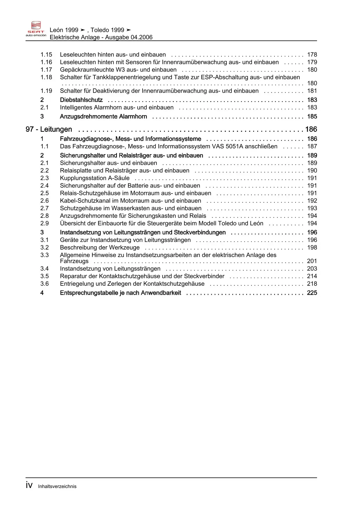 Der Seat Toledo II Reparaturleitfaden ist ein lizenzierter Nachdruck der originalen Werkstattunterlagen. Diese Anleitung wird von Vertragswerkstätten verwendet und enthält alle technischen Informationen für fachgerechte Reparaturen.
