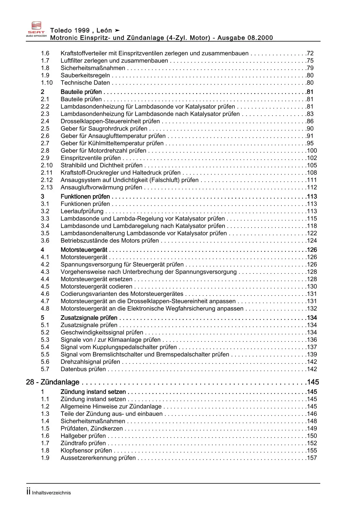 Der Seat Toledo II Reparaturleitfaden ist ein lizenzierter Nachdruck der originalen Werkstattunterlagen. Diese Anleitung wird von Vertragswerkstätten verwendet und enthält alle technischen Informationen für fachgerechte Reparaturen.