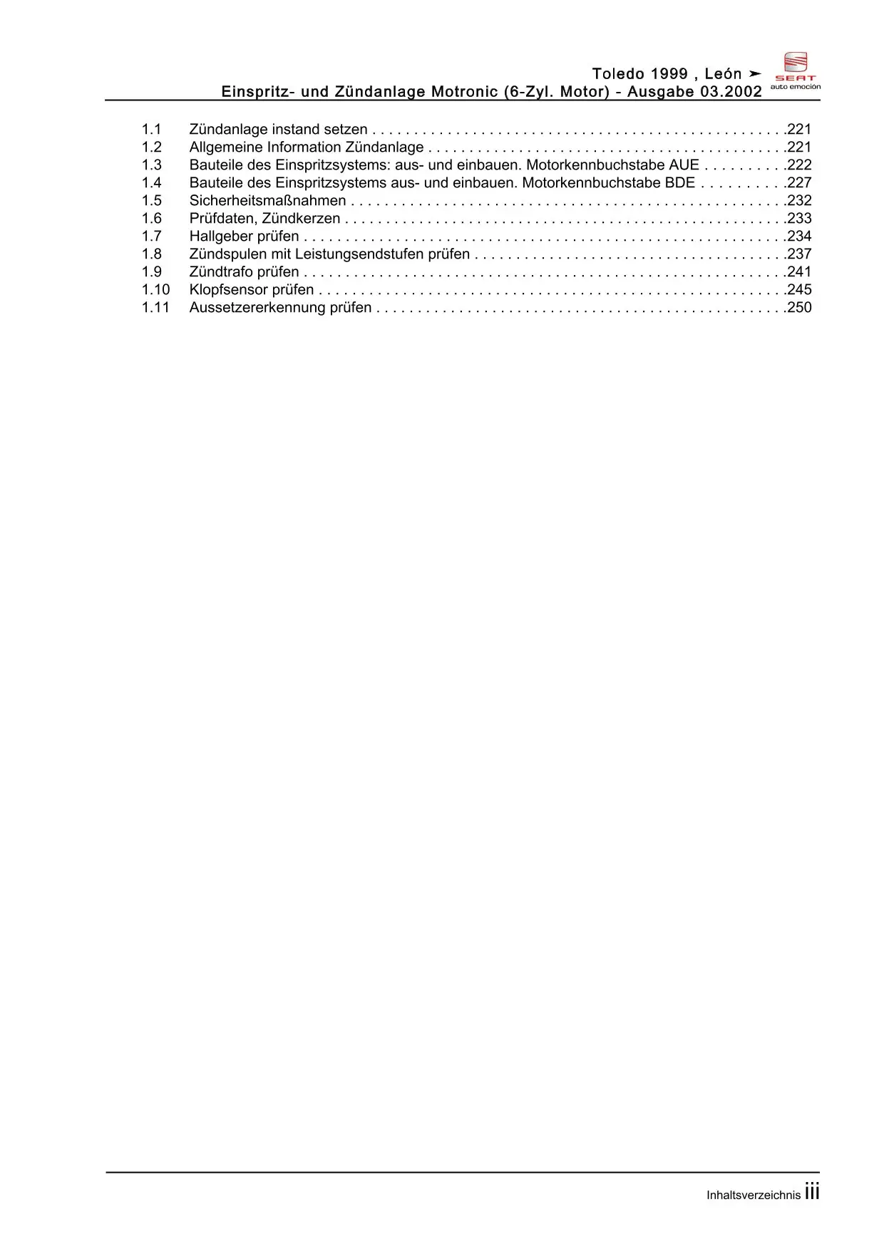 Offizieller Seat Toledo II Reparaturleitfaden (Typ 1M, 1M2)