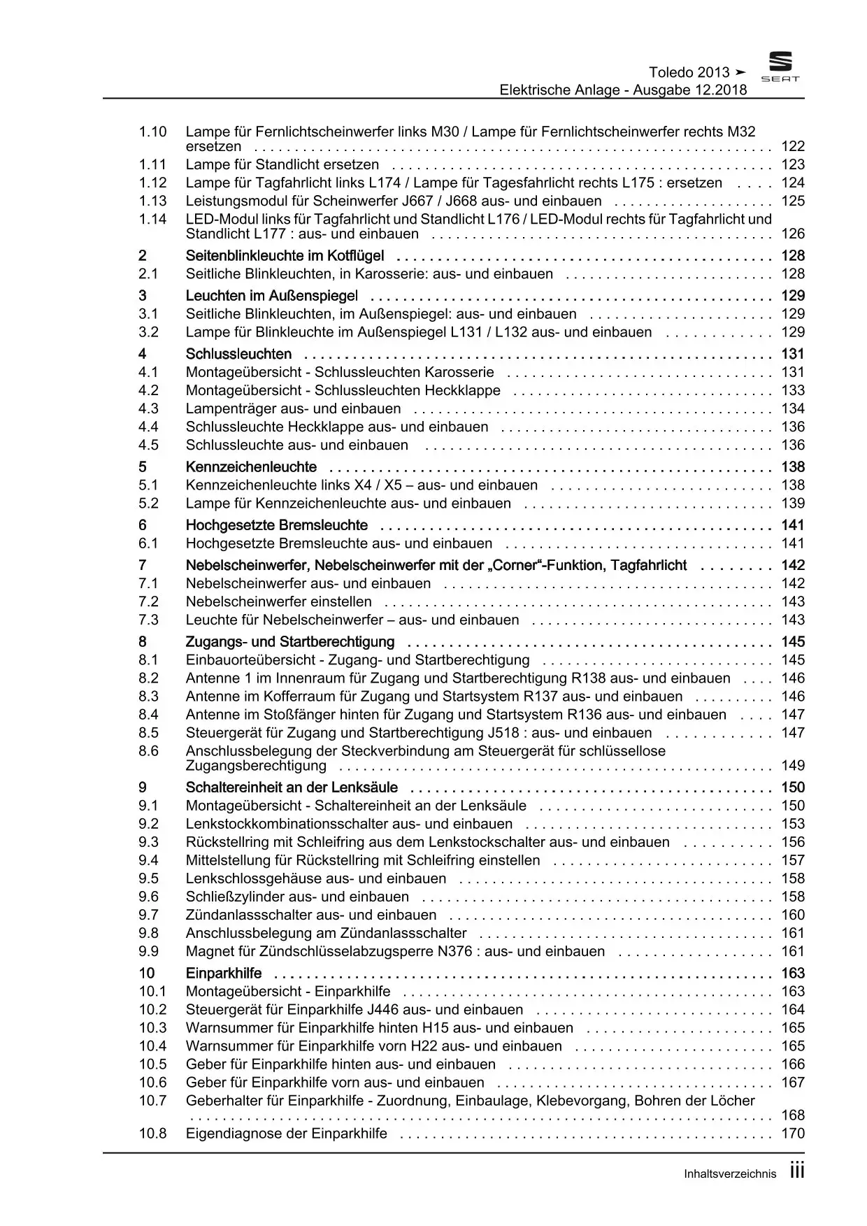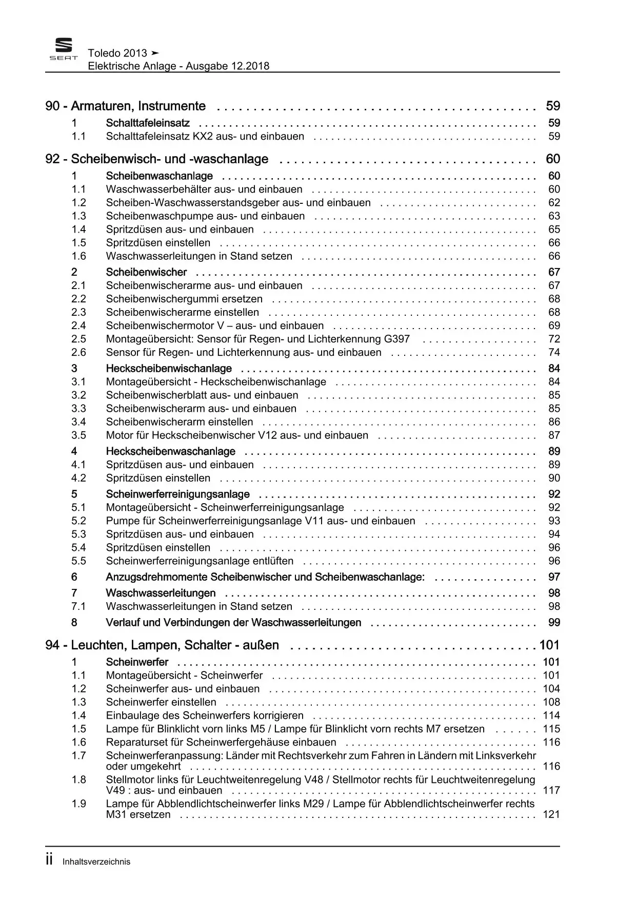 Seat Toledo KG 2012-2019 Elektrische Anlage Elektrik Systeme Reparaturanleitung