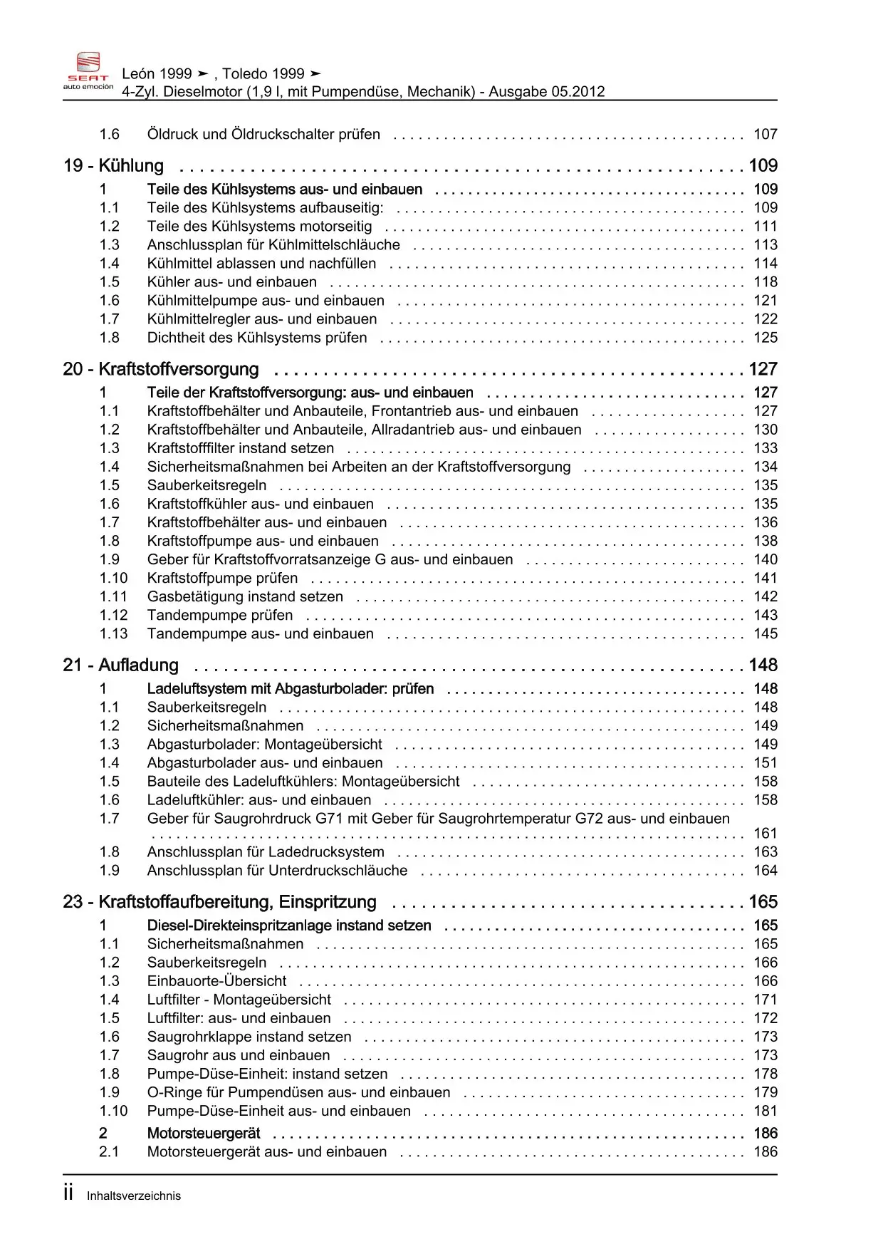 Der Seat Toledo II Reparaturleitfaden ist ein lizenzierter Nachdruck der originalen Werkstattunterlagen. Diese Anleitung wird von Vertragswerkstätten verwendet und enthält alle technischen Informationen für fachgerechte Reparaturen.