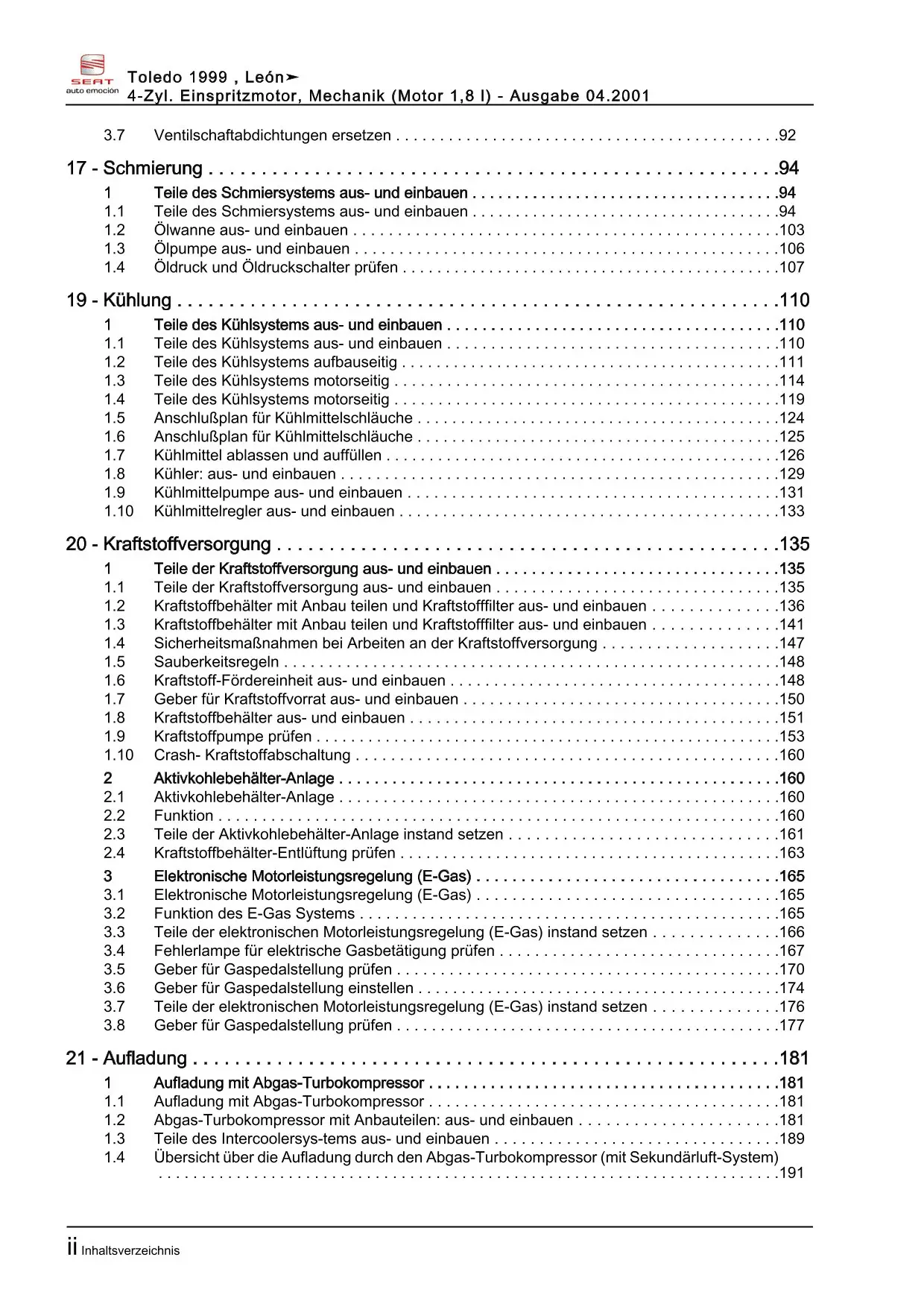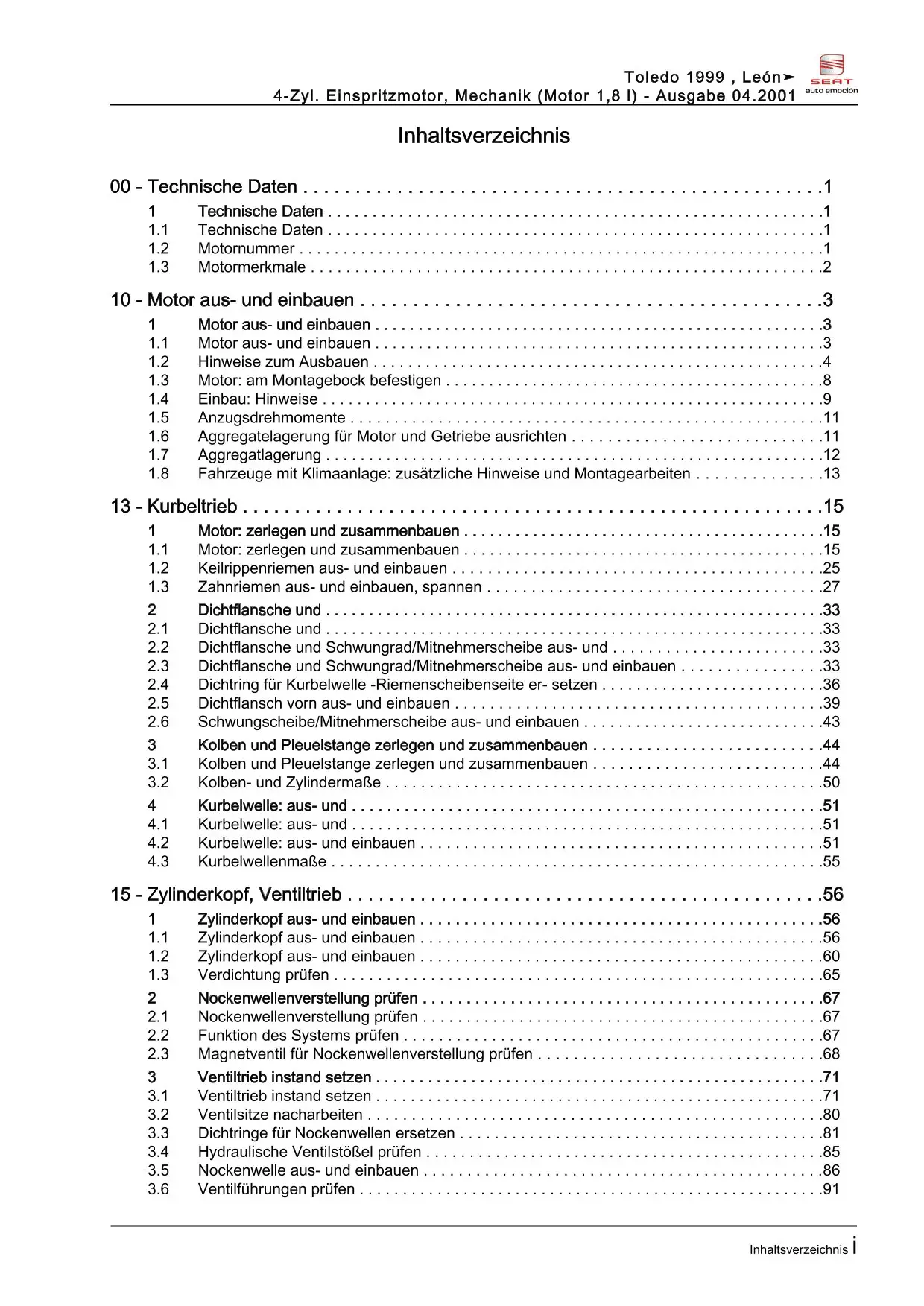 Der Seat Toledo II Reparaturleitfaden ist ein lizenzierter Nachdruck der originalen Werkstattunterlagen. Diese Anleitung wird von Vertragswerkstätten verwendet und enthält alle technischen Informationen für fachgerechte Reparaturen.