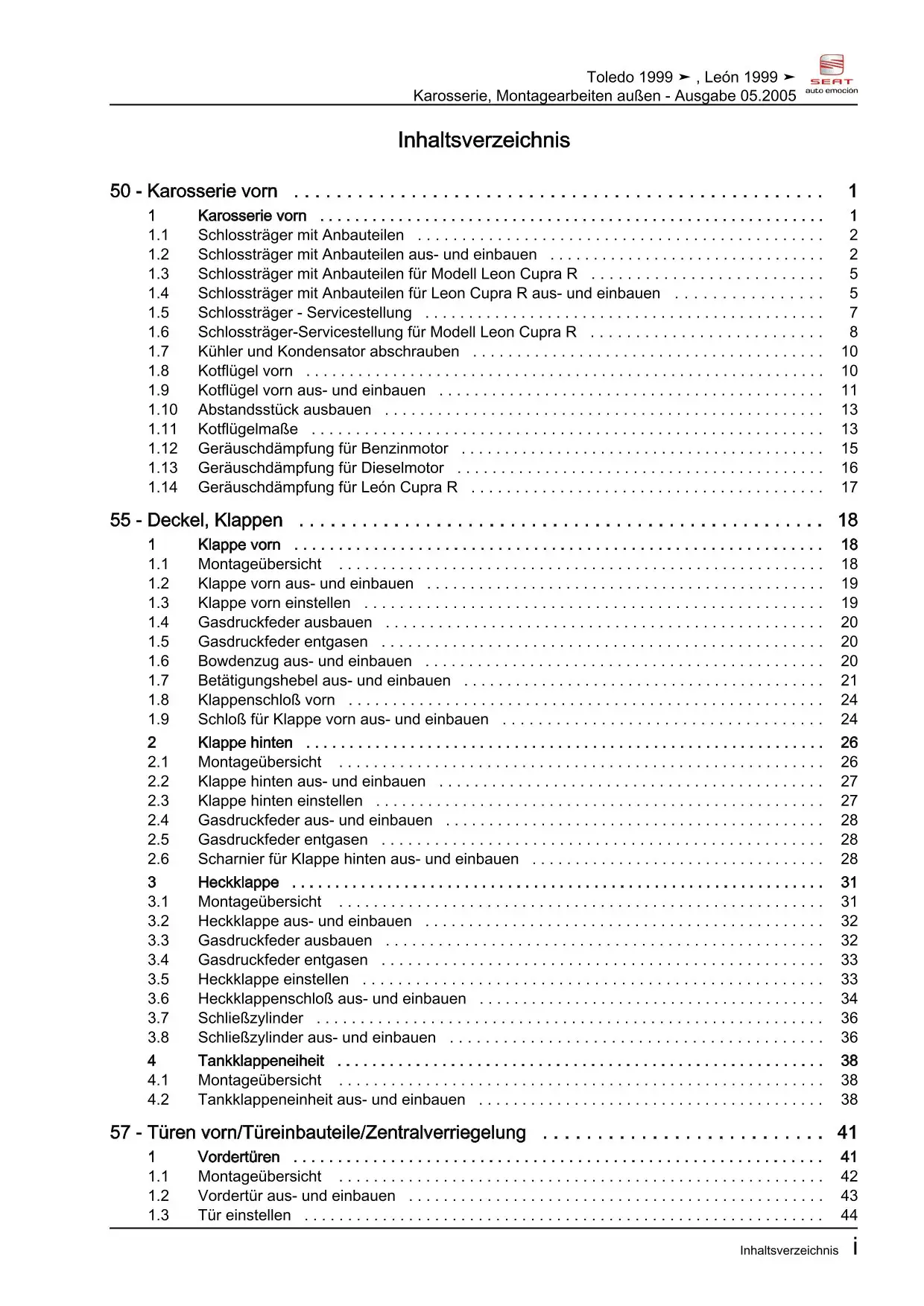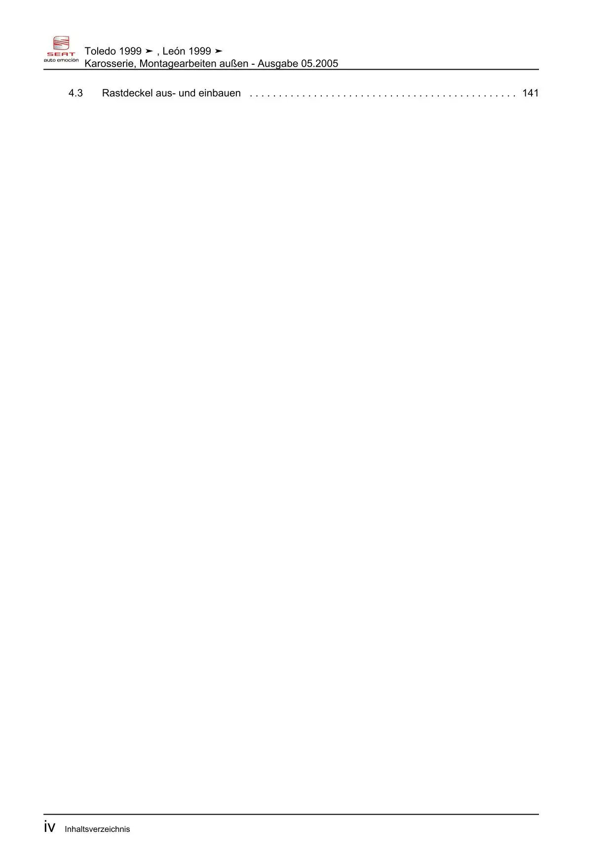 Seat Toledo Typ 1M 1998-2004 Karosserie Montagearbeiten Außen Reparaturanleitung