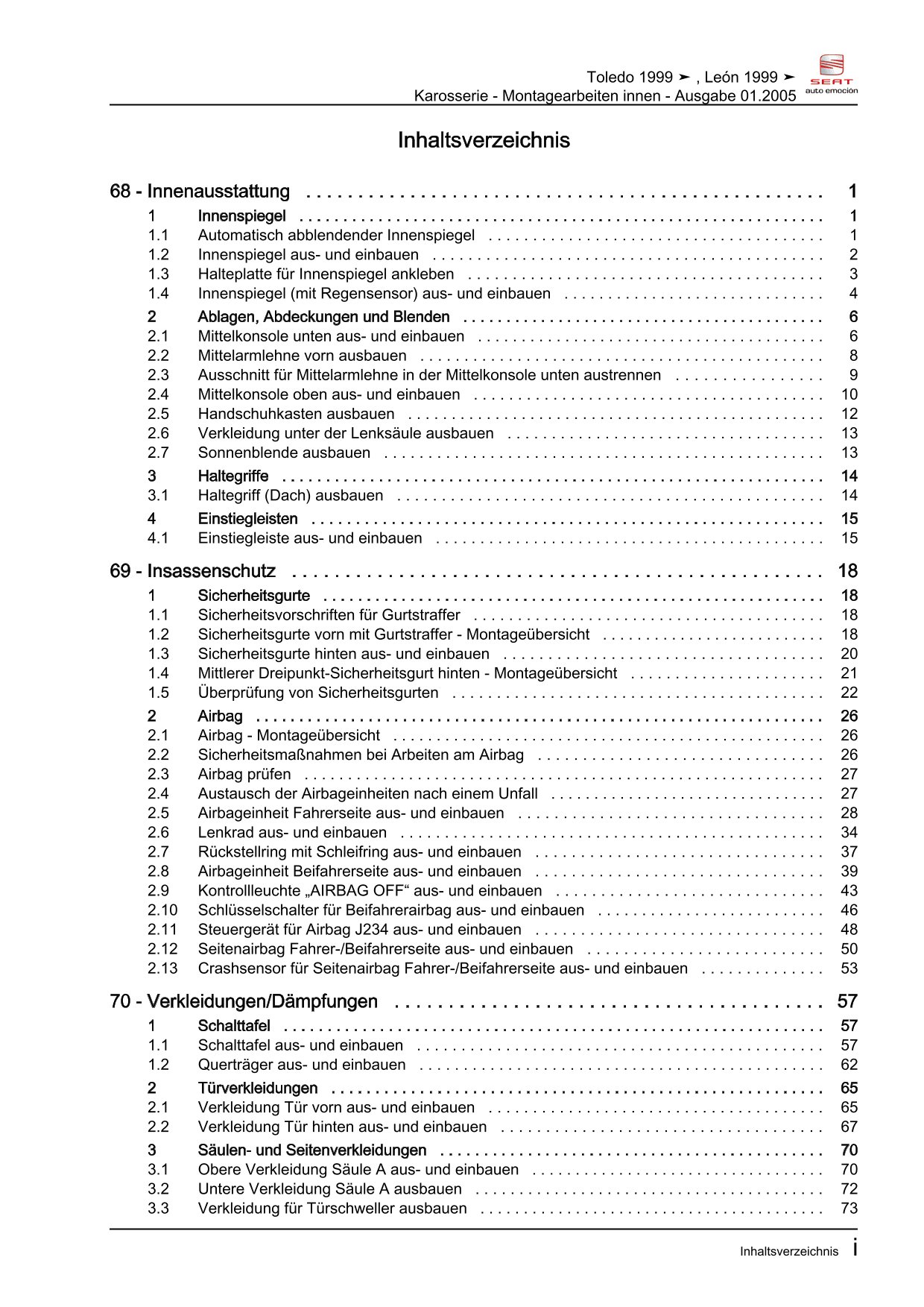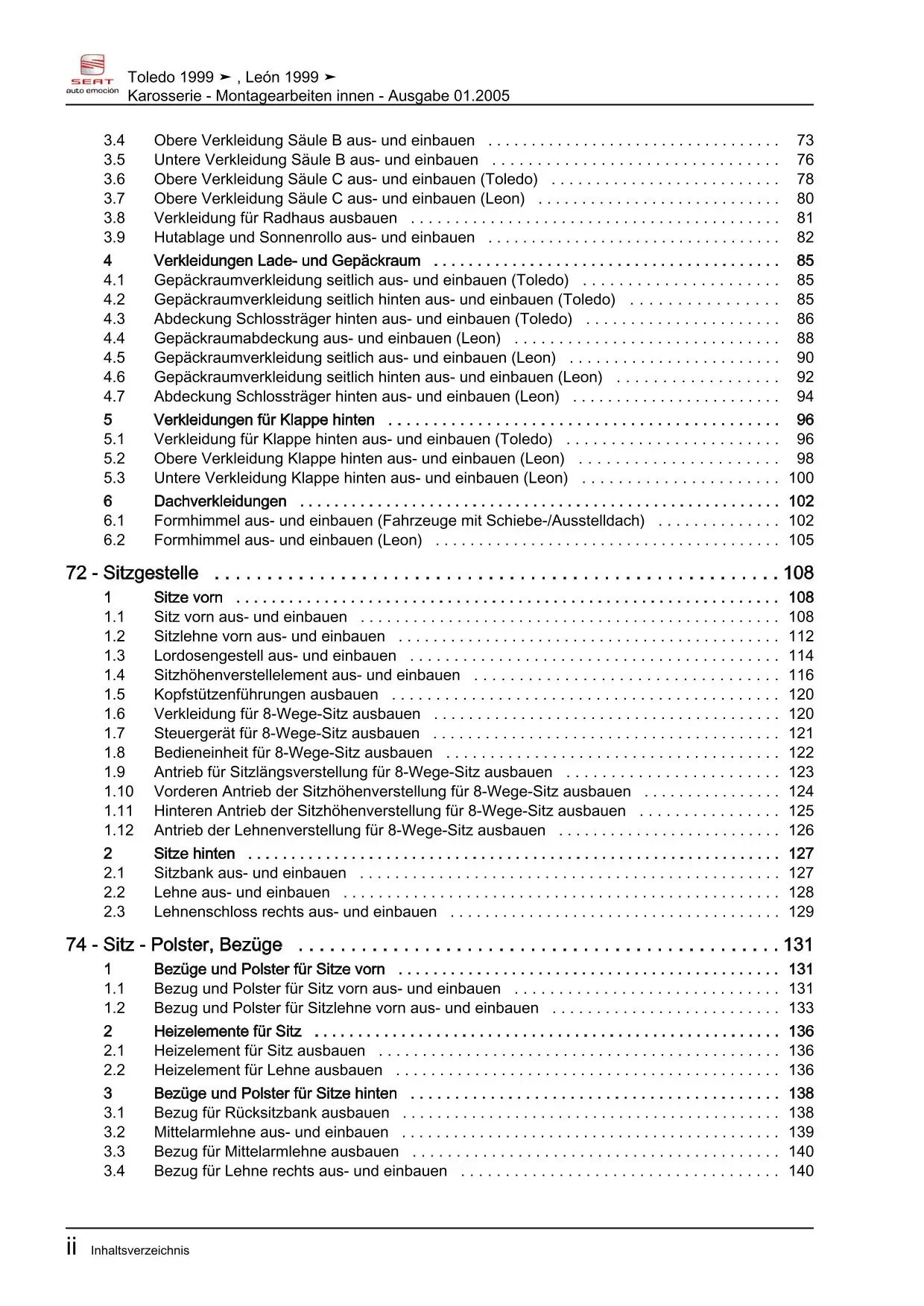 Offizieller Seat Toledo II Reparaturleitfaden (Typ 1M, 1M2)