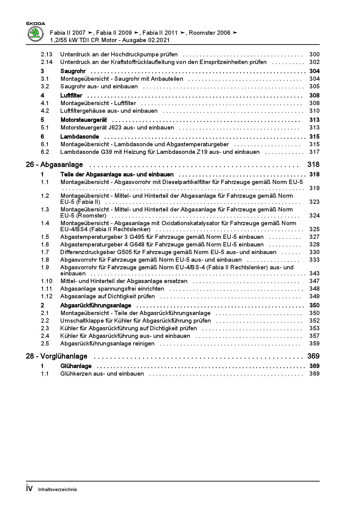 Der Skoda Fabia II Reparaturleitfaden ist ein lizenzierter Nachdruck der originalen Werkstattunterlagen. Diese Anleitung wird von Vertragswerkstätten verwendet und enthält alle technischen Informationen für fachgerechte Reparaturen.