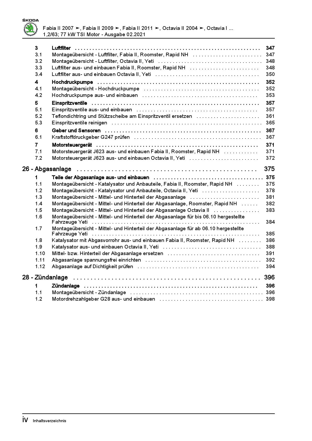 Der Skoda Fabia II Reparaturleitfaden ist ein lizenzierter Nachdruck der originalen Werkstattunterlagen. Diese Anleitung wird von Vertragswerkstätten verwendet und enthält alle technischen Informationen für fachgerechte Reparaturen.