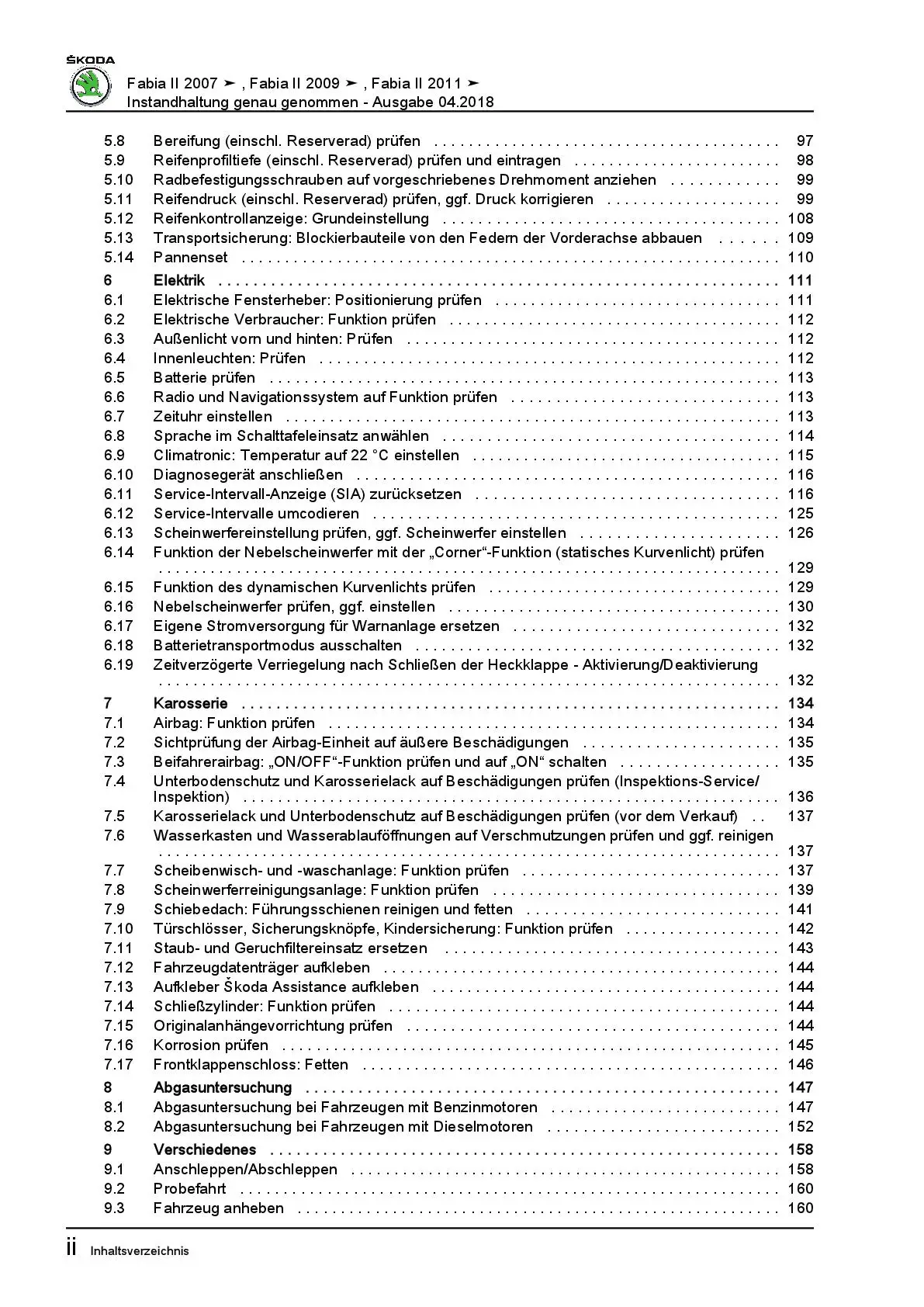 SKODA Fabia 5J 2006-2014 Instandhaltung Inspektion Wartung Reparaturanleitung
