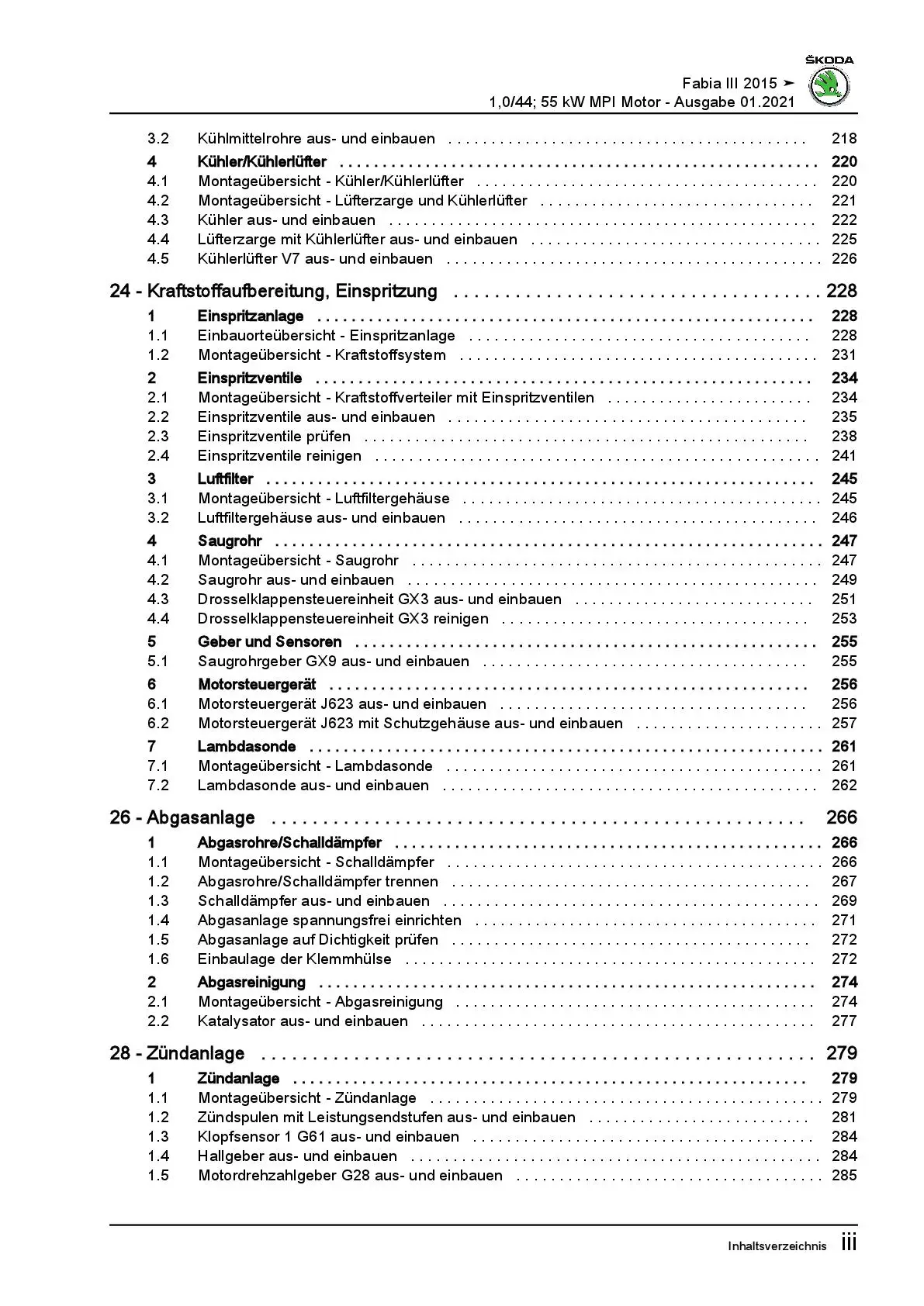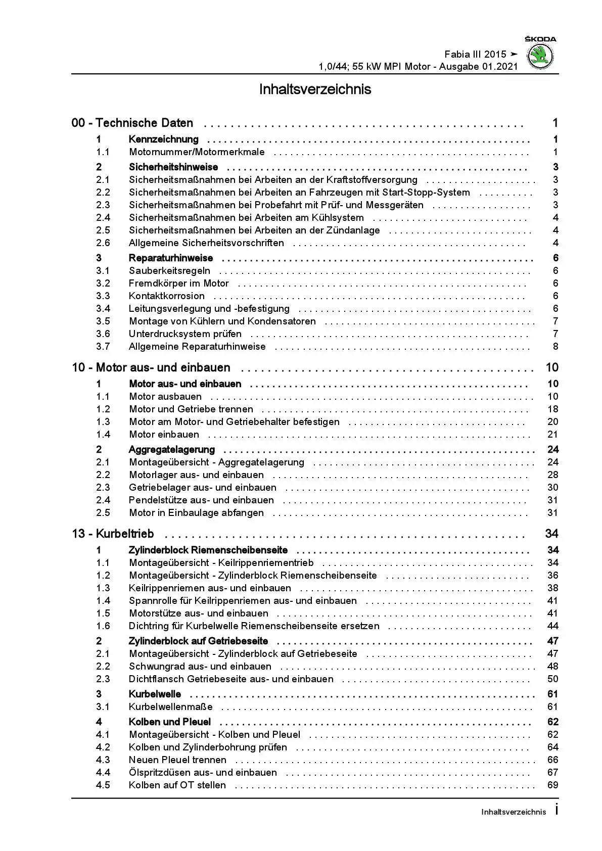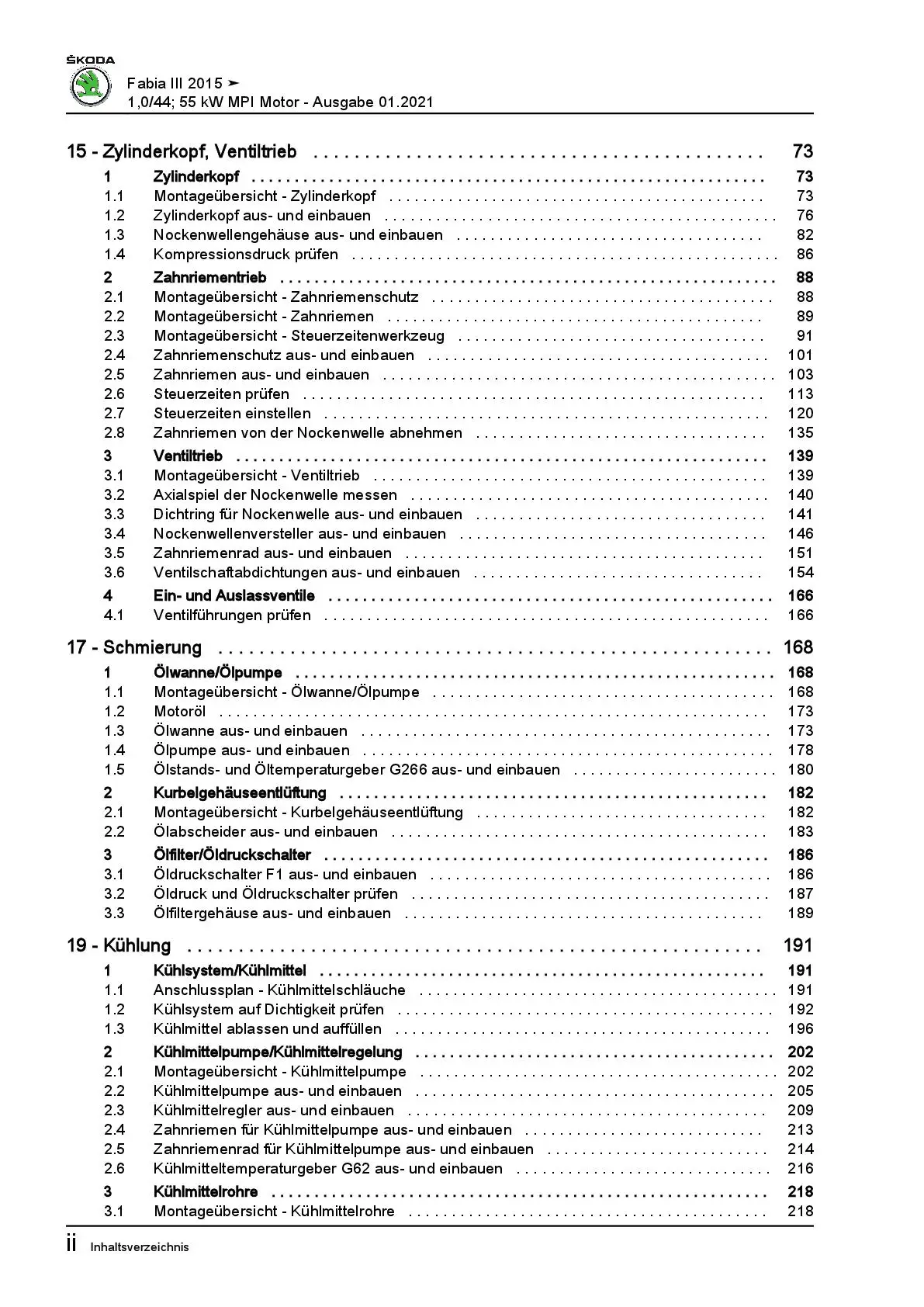 SKODA Fabia Typ NJ 2014-2021 3-Zyl. 1,0l Benzinmotor 60-75 PS Reparaturanleitung