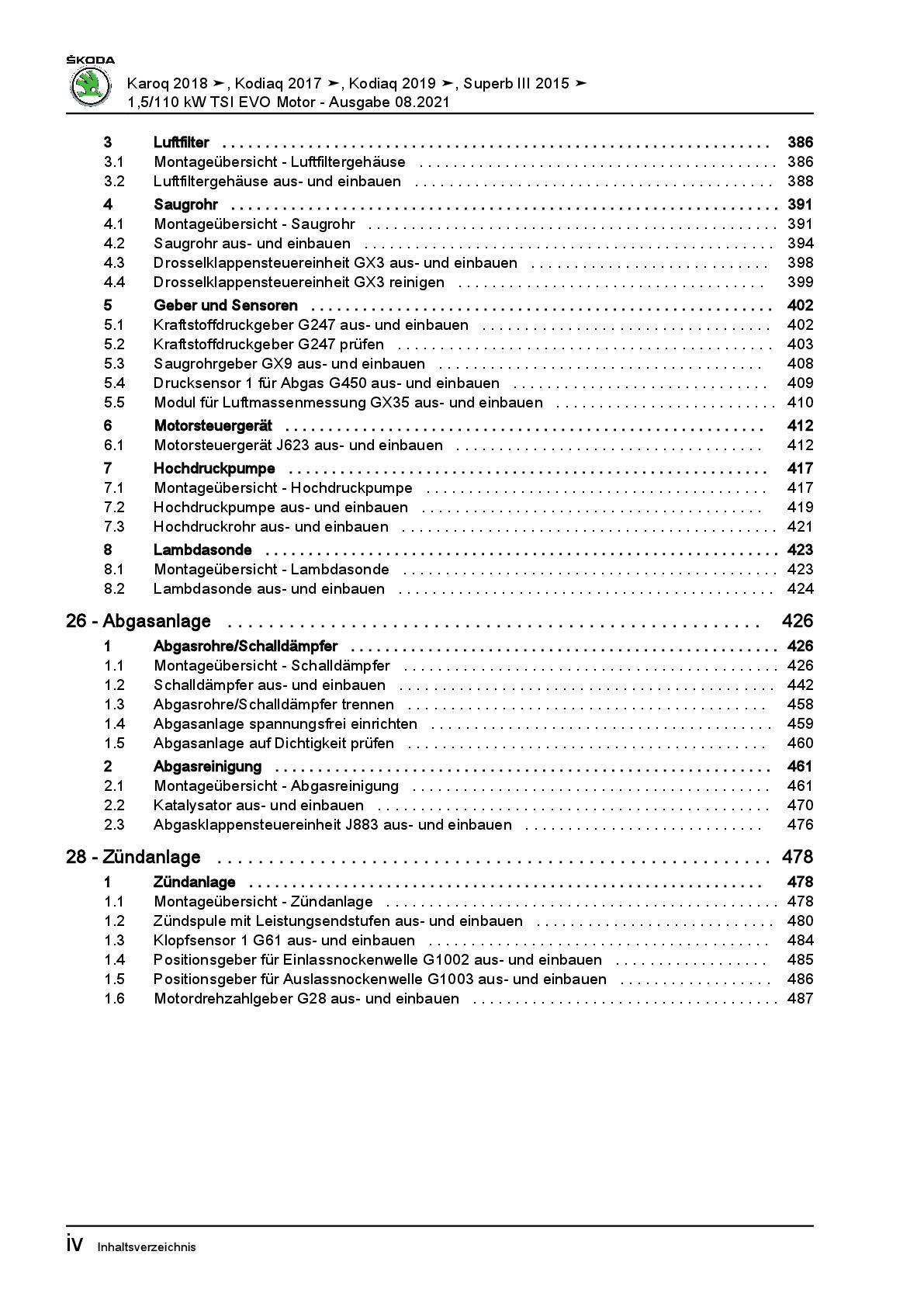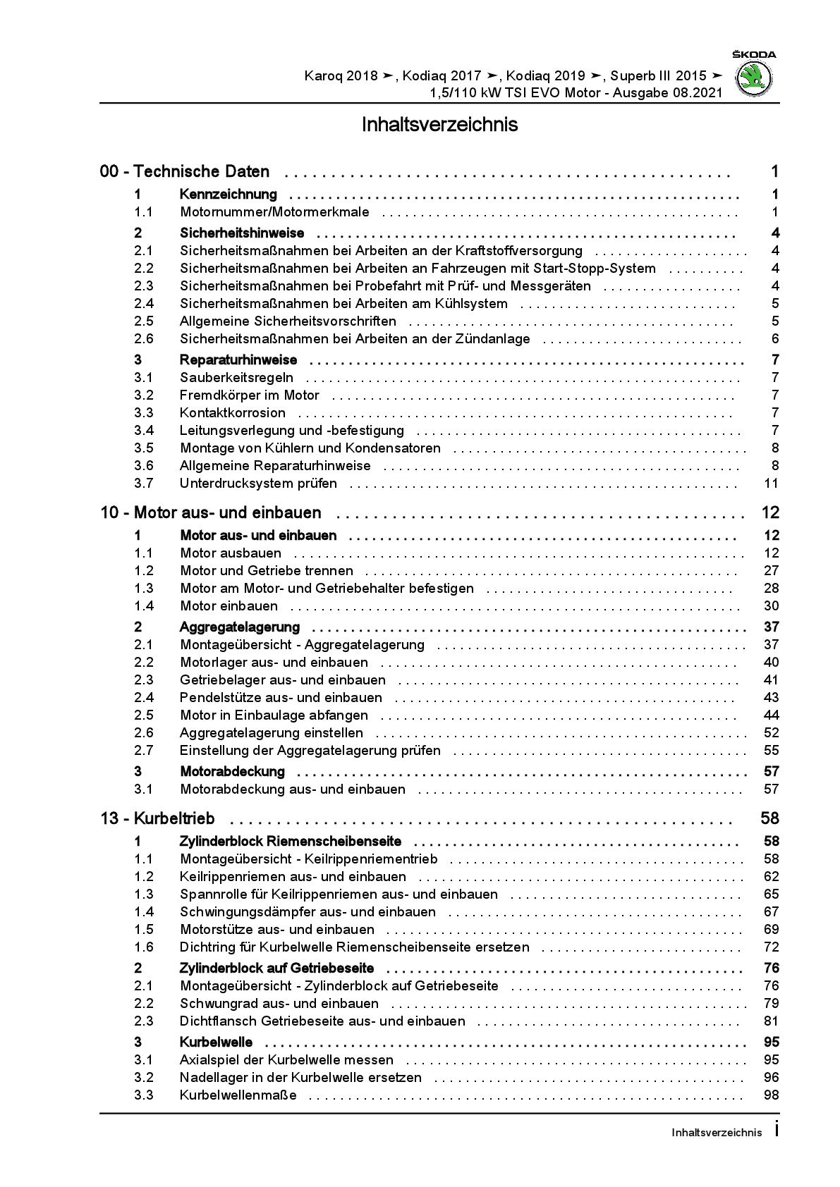 Skoda Kodiaq Typ NS ab 2016 4-Zyl. 1,5l Benzinmotor 150 PS Reparaturanleitung
