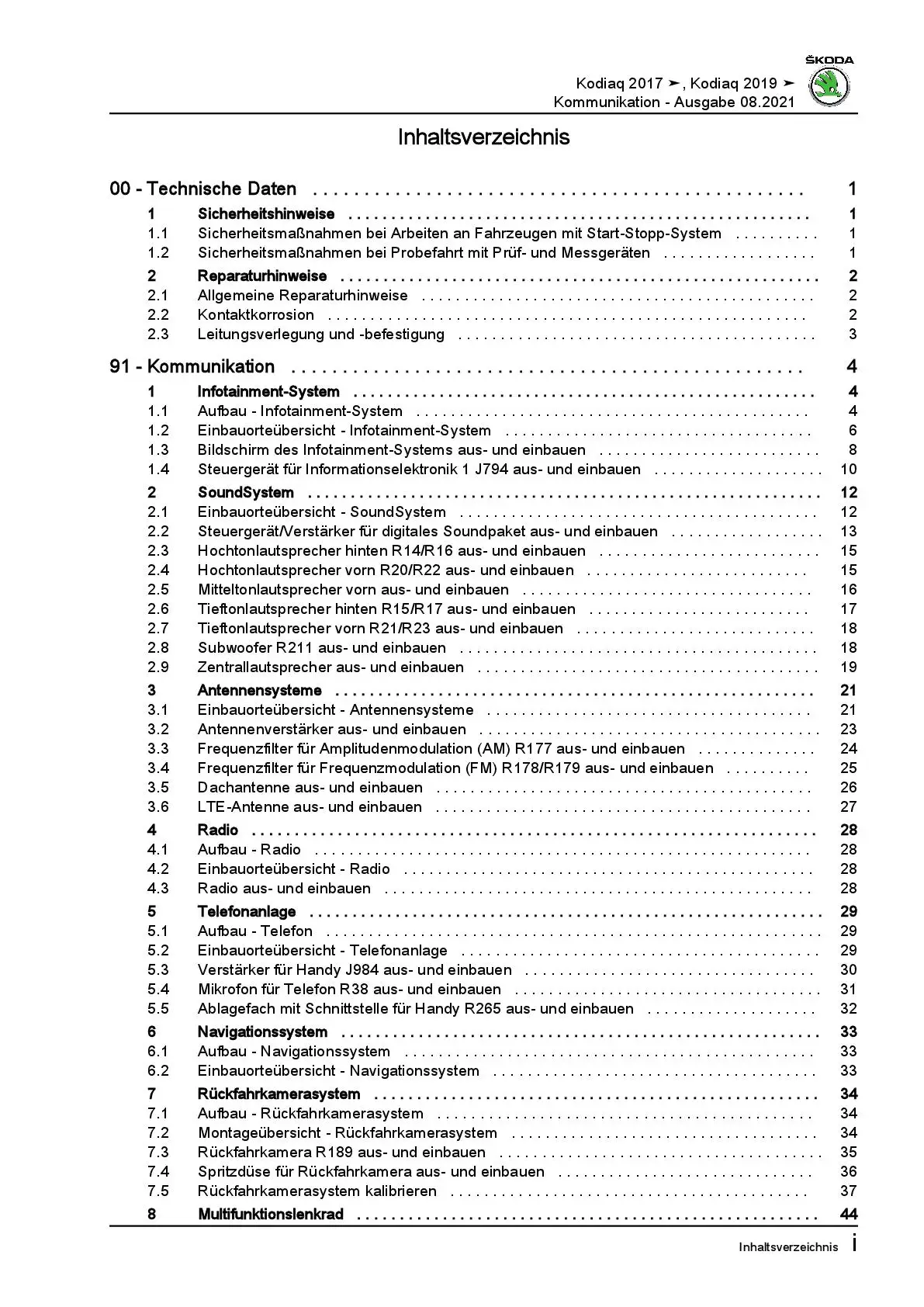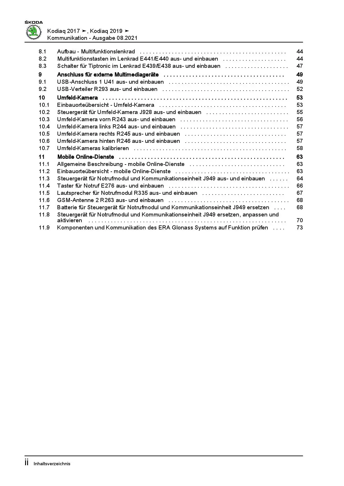 Skoda Kodiaq Typ NS ab 2016 Radio Navigation Kommunikation Reparaturanleitung