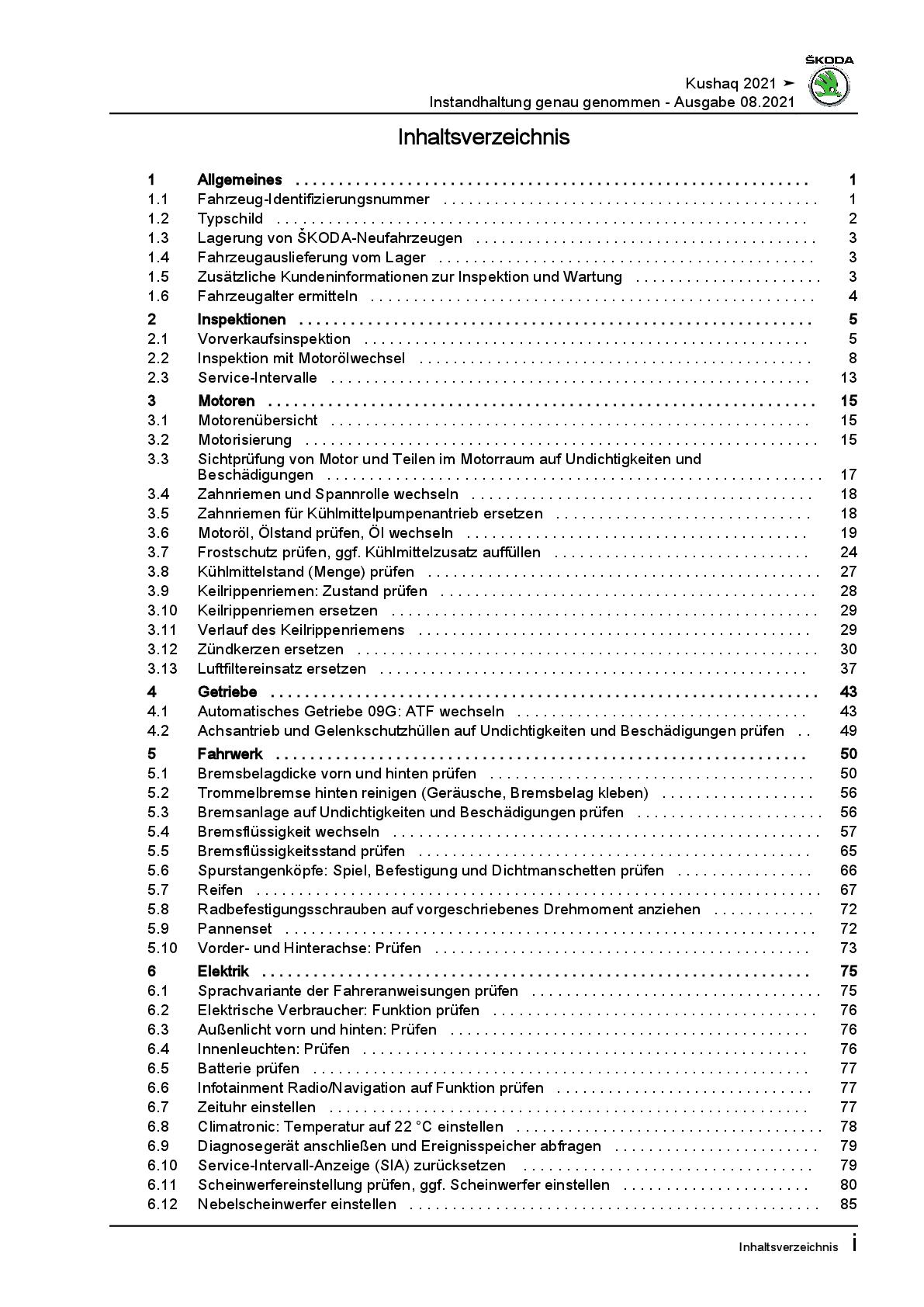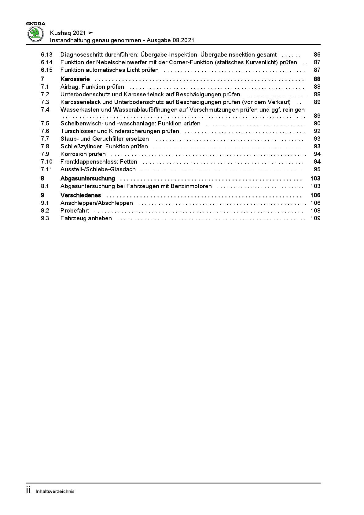 SKODA Kushaq Typ PA ab 2021 Instandhaltung Inspektion Wartung Reparaturanleitung