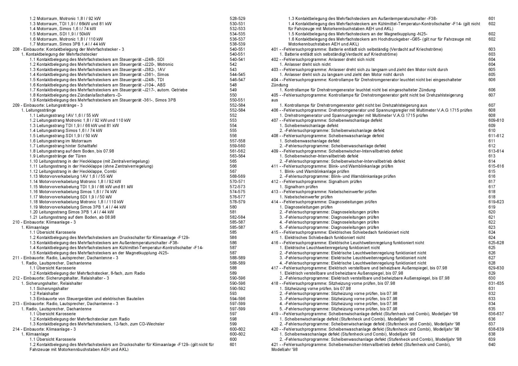 Diese Reparaturanleitung enthält detaillierte Beschreibungen zu Aus- und Einbauarbeiten, Einstell- und Prüfarbeiten sowie zahlreiche Grafiken, Bilder und Explosionszeichnungen. Die Kunststoffringbindung ermöglicht ein problemloses Umschlagen bis zu 180°.