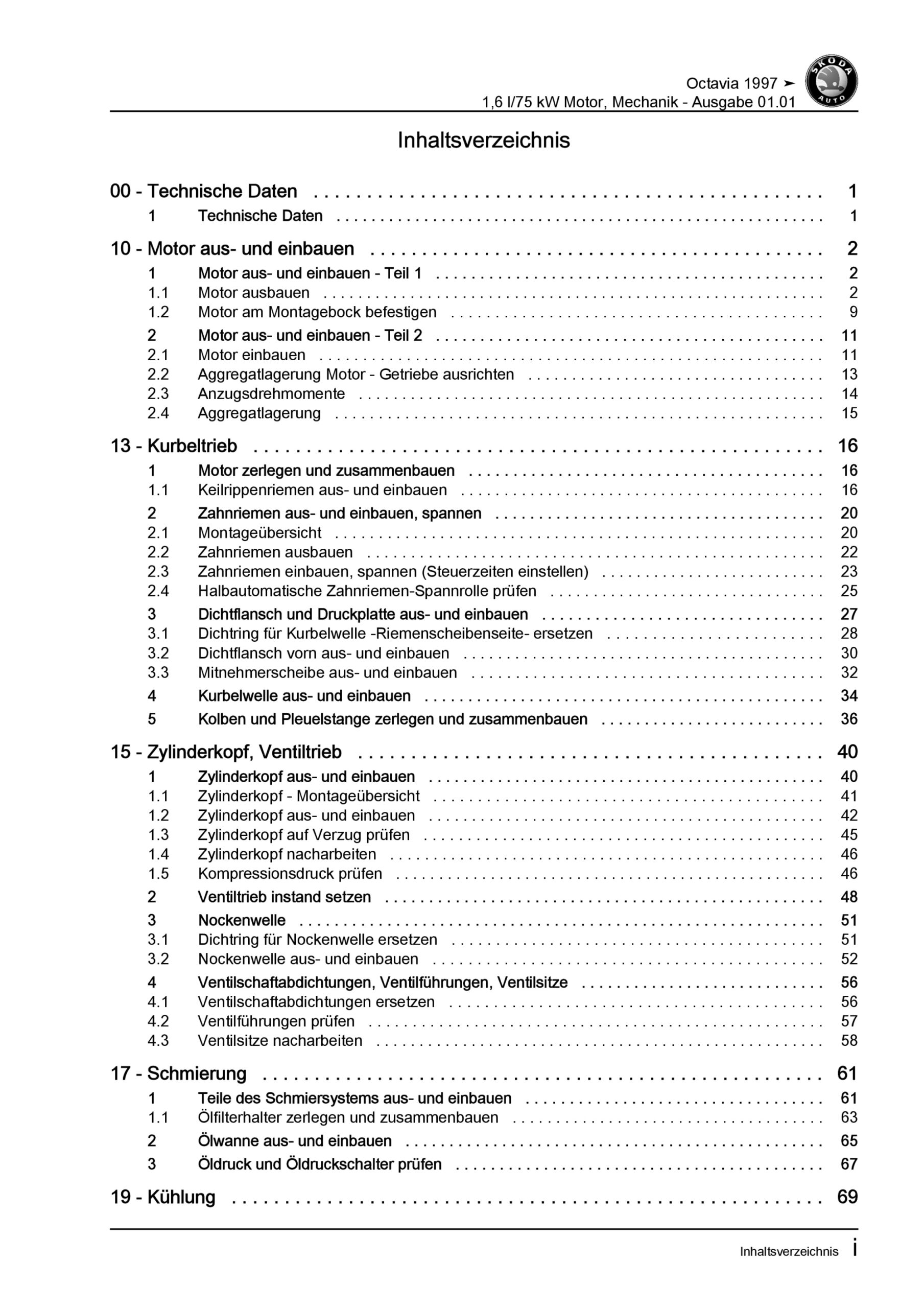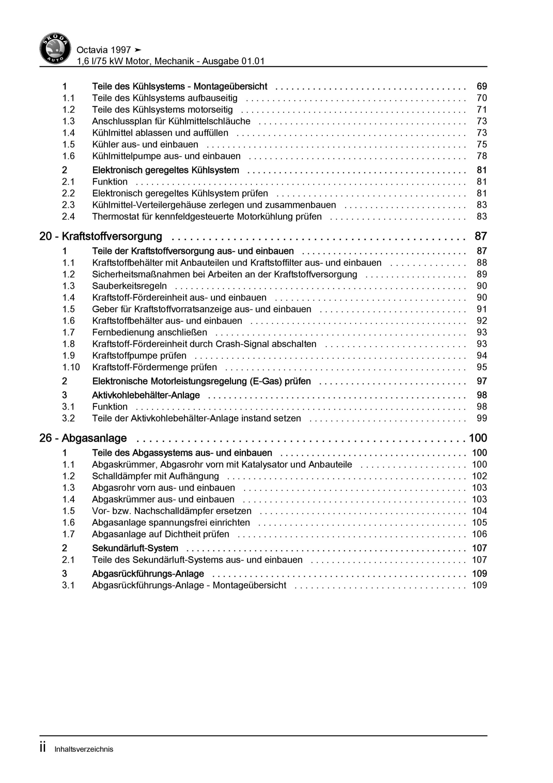 SKODA Octavia 1U 1996-2010 1,6l Benzinmotor 102 PS Mechanik Reparaturanleitung