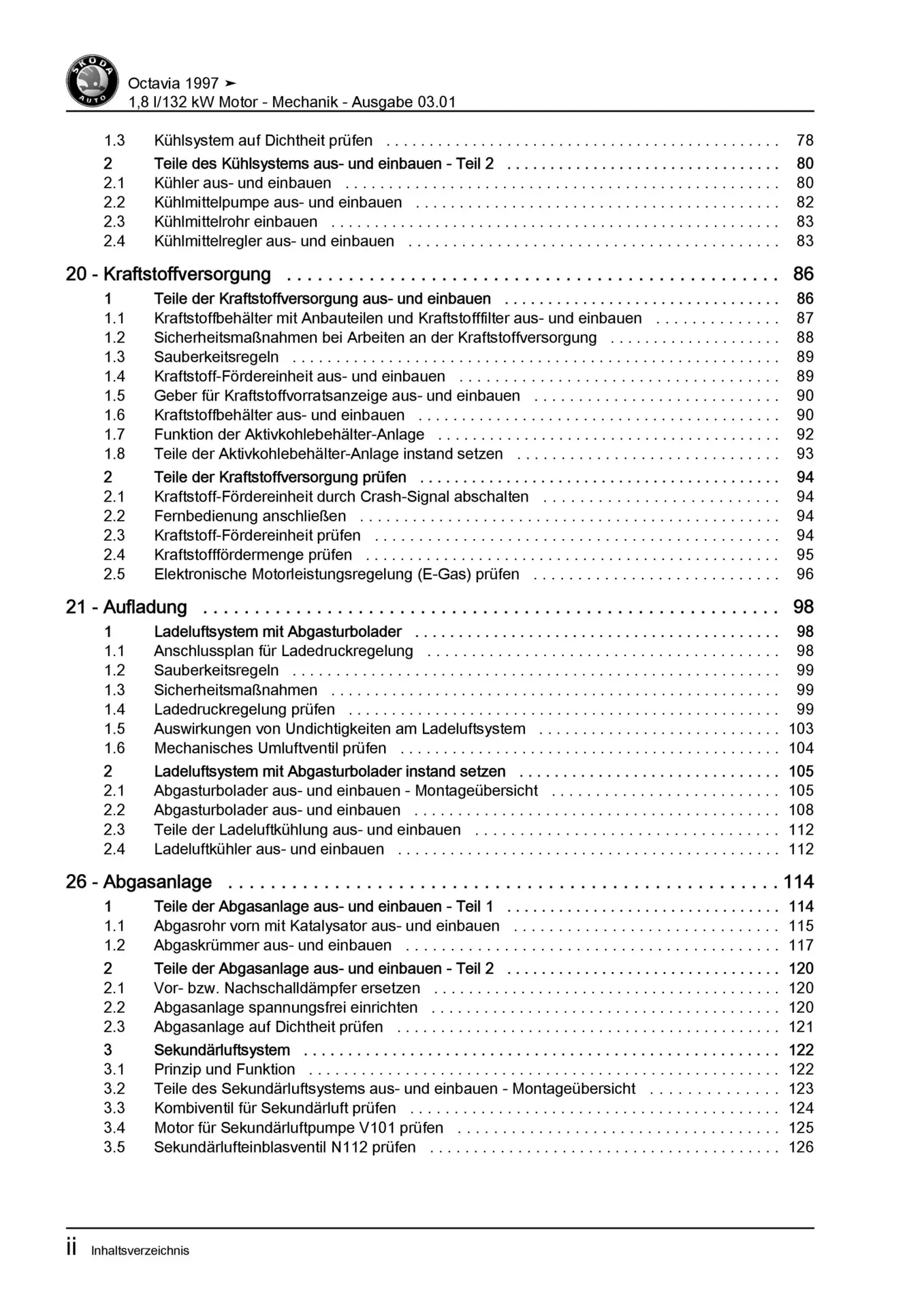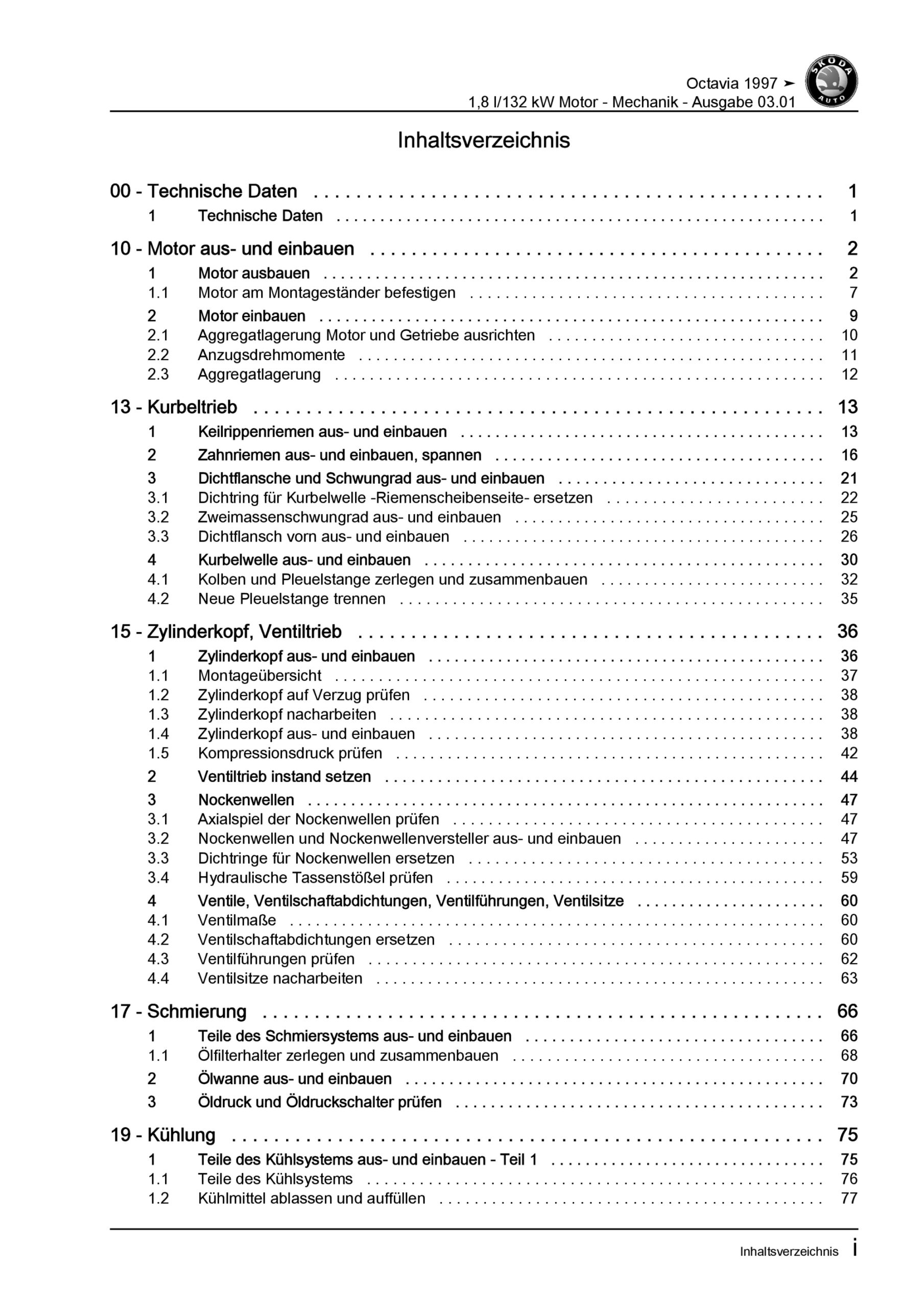 SKODA Octavia 1U 1996-2010 1,8l Benzinmotor 180 PS Mechanik Reparaturanleitung