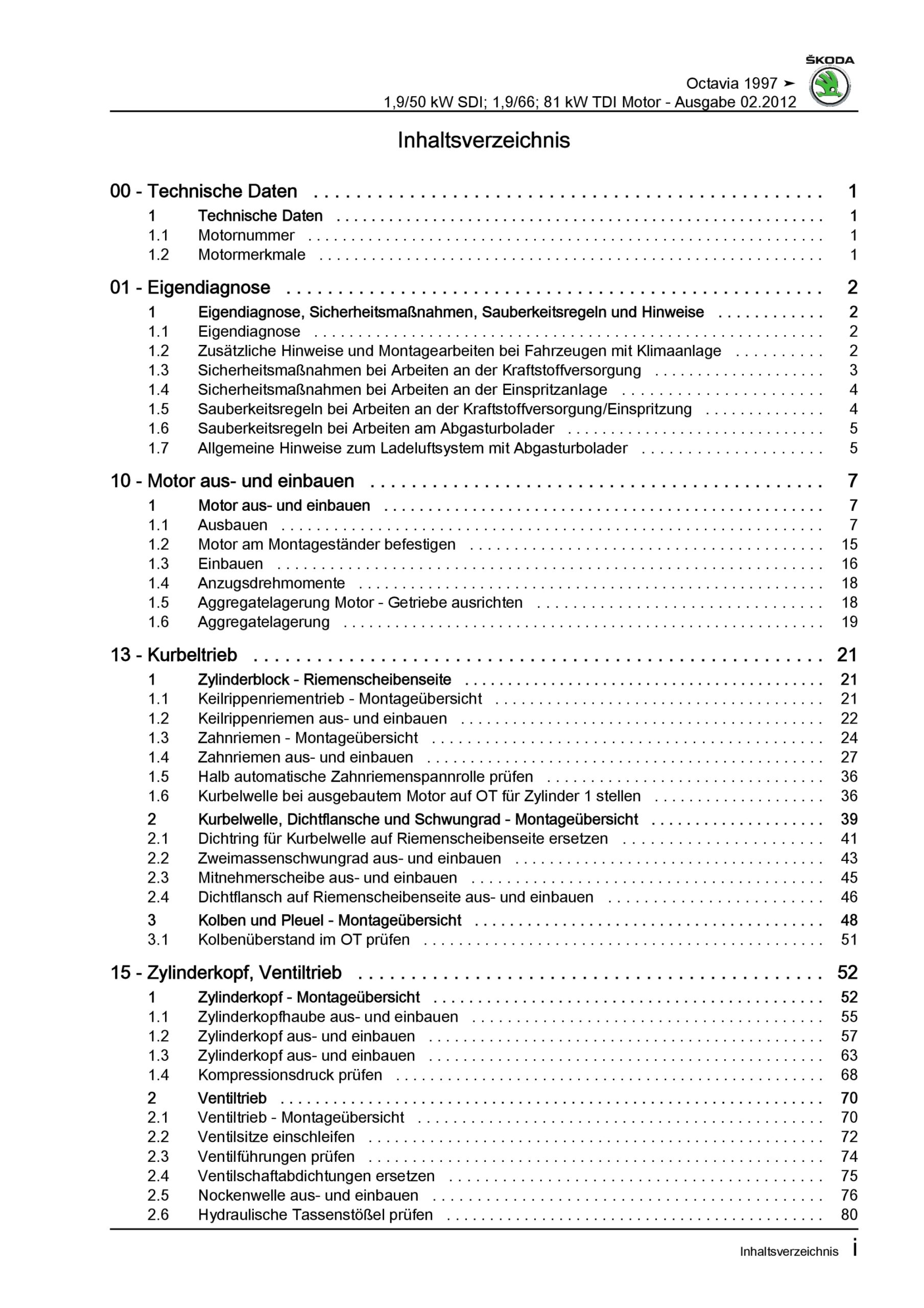 Offizieller Skoda Octavia I inkl. Combi, Tour Reparaturleitfaden
