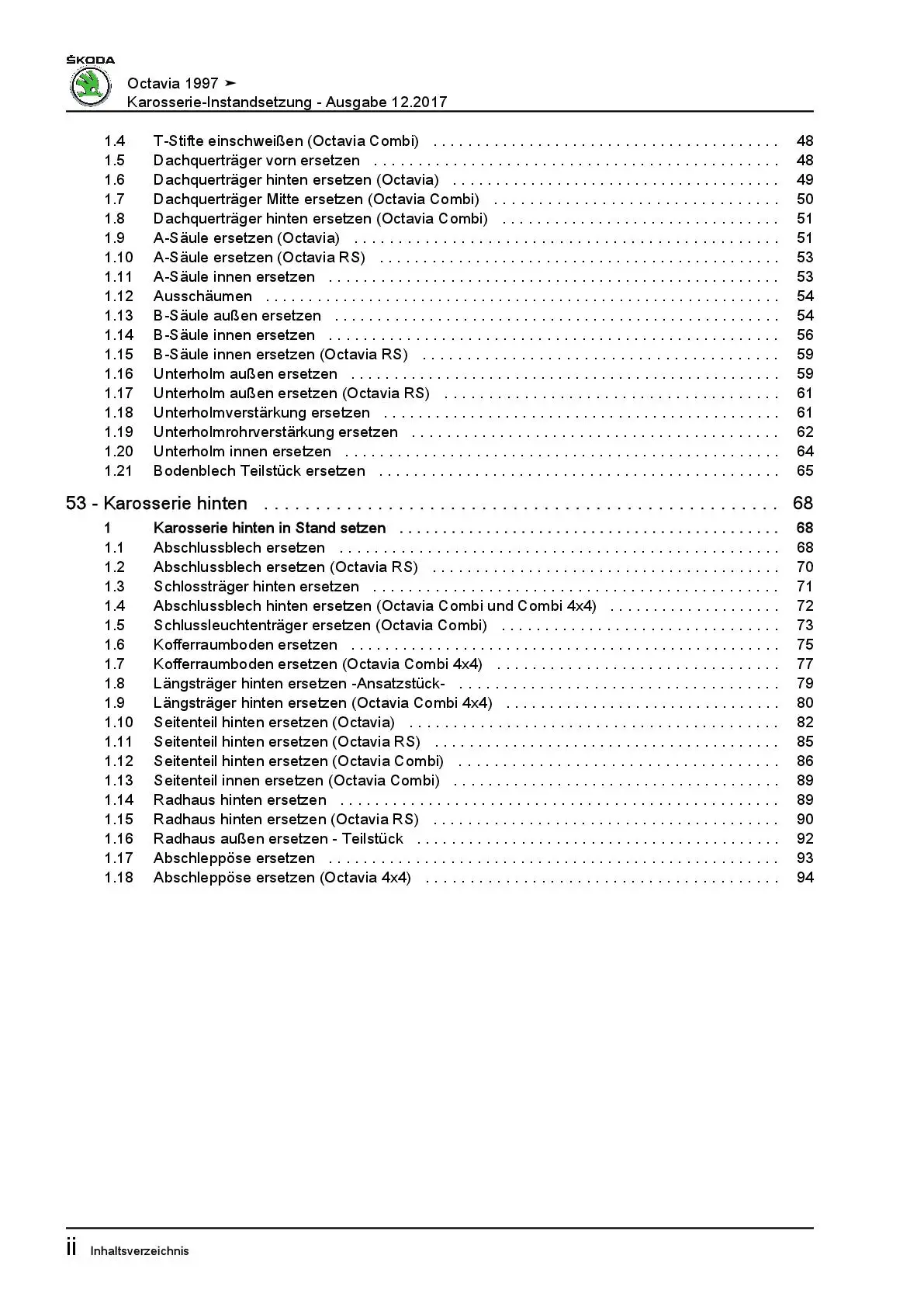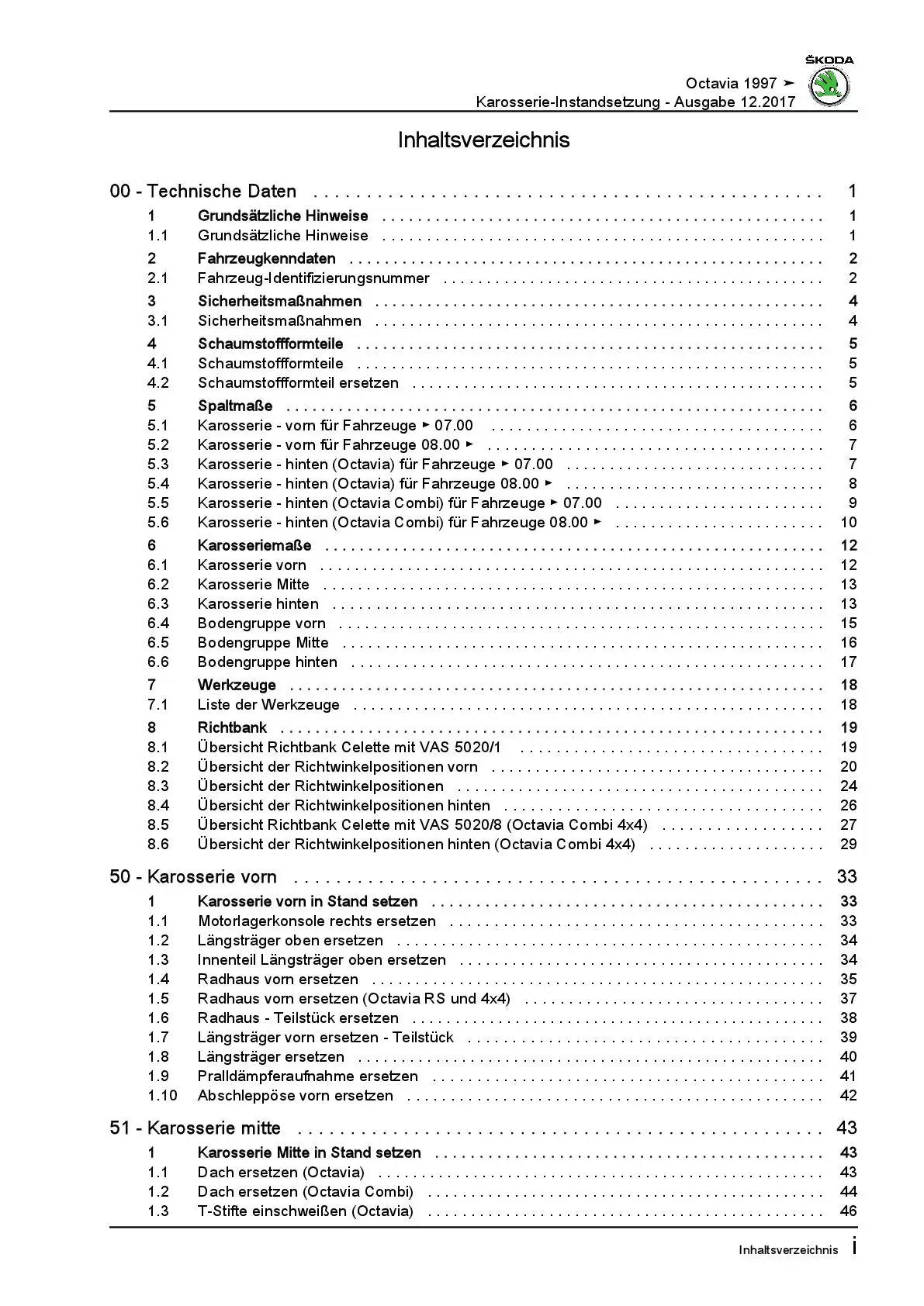 Offizieller Skoda Octavia I inkl. Combi, Tour Reparaturleitfaden