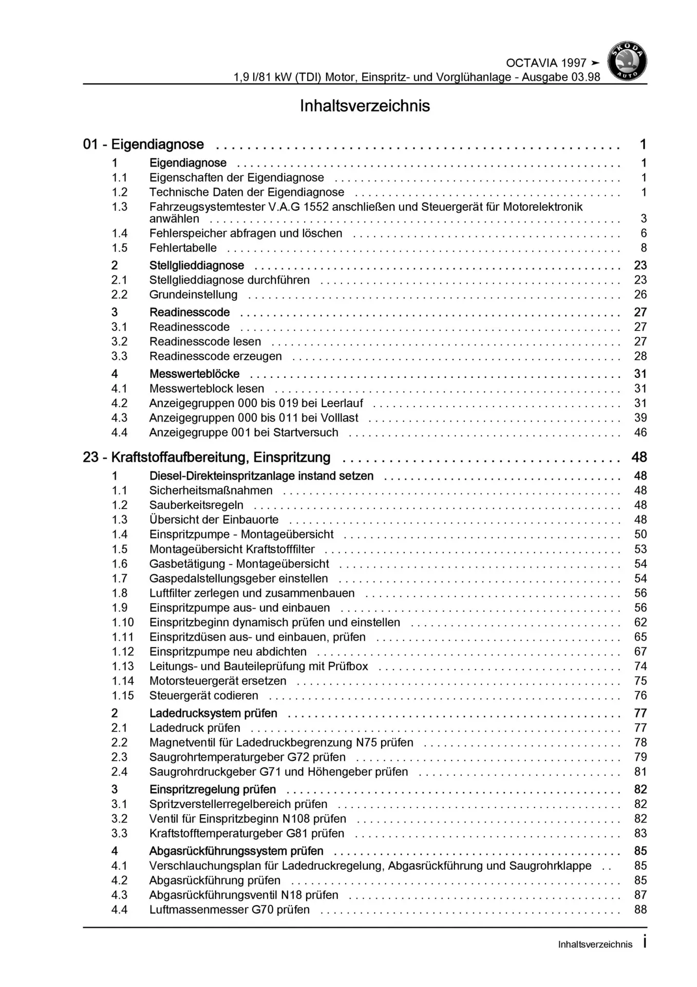 Offizieller Skoda Octavia I inkl. Combi, Tour Reparaturleitfaden