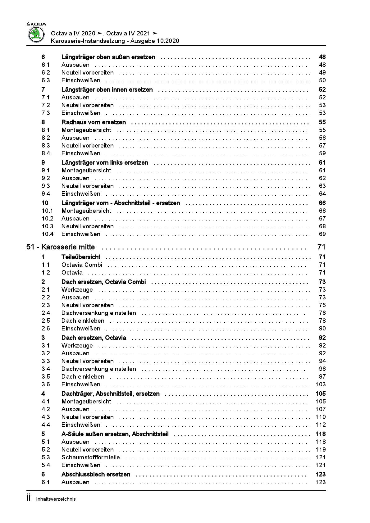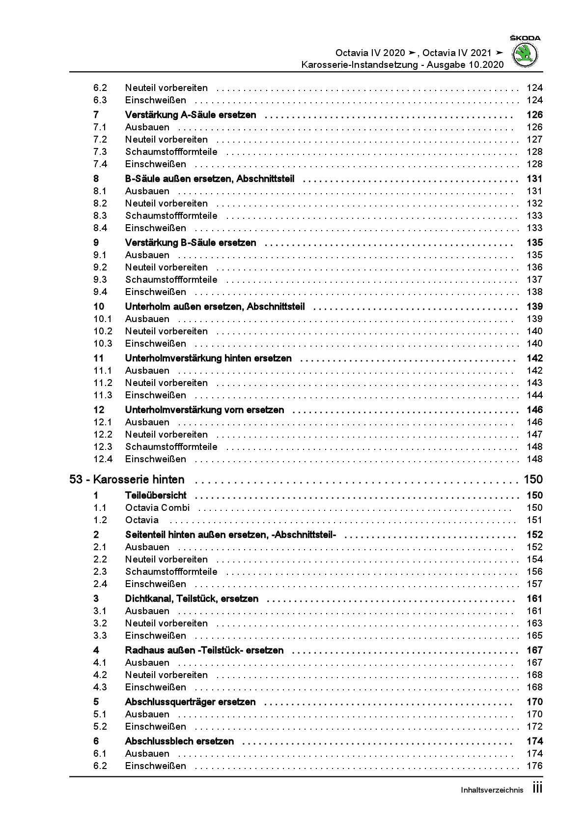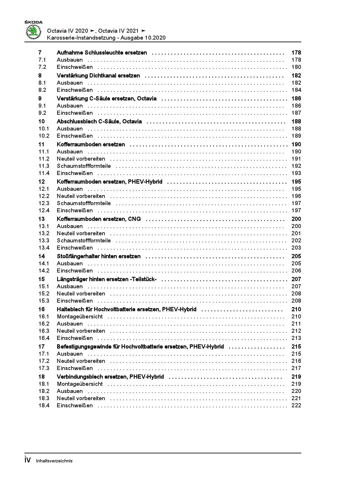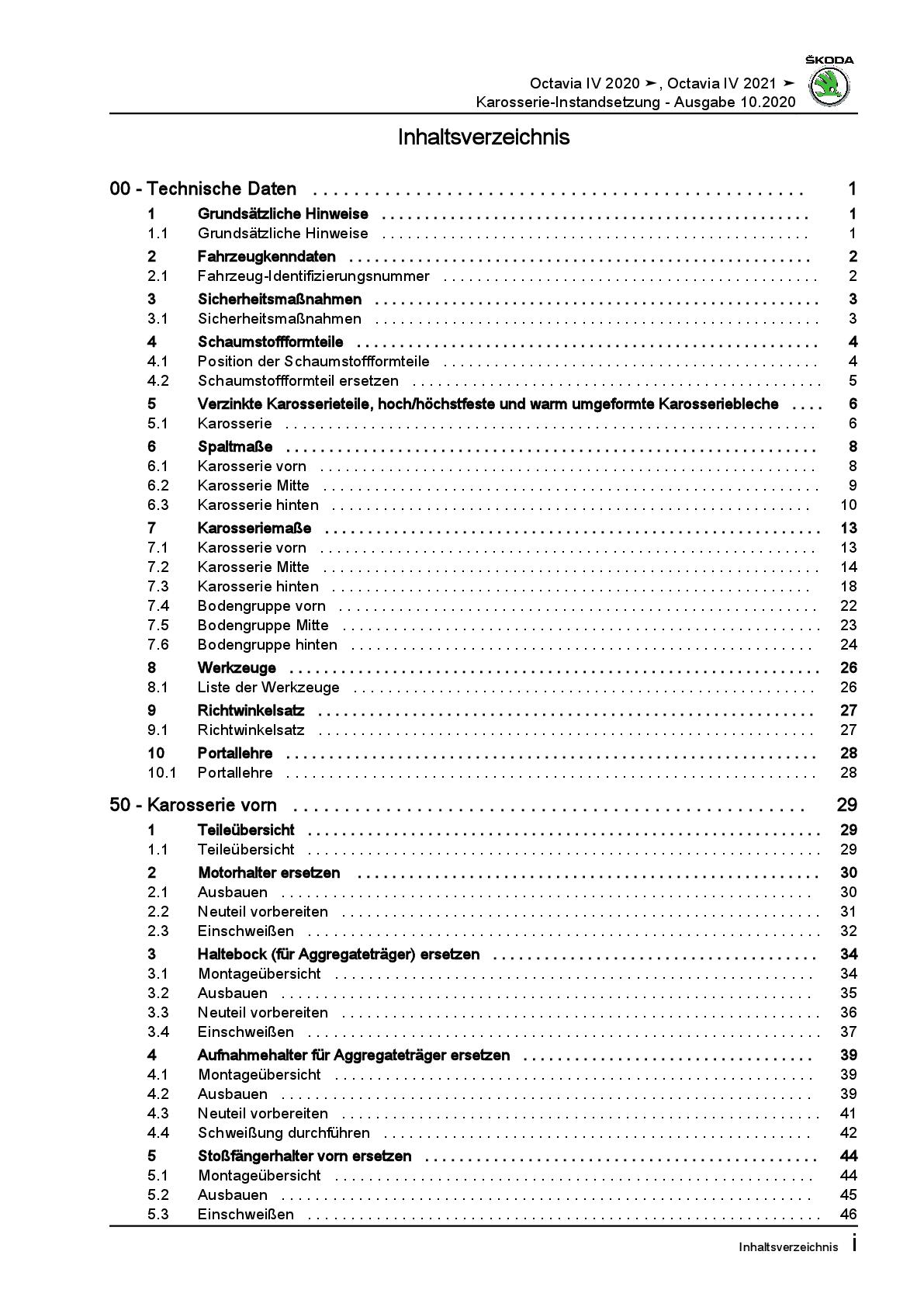 SKODA Octavia Typ NN ab 2019 Karosserie Unfall Instandsetzung Reparaturanleitung