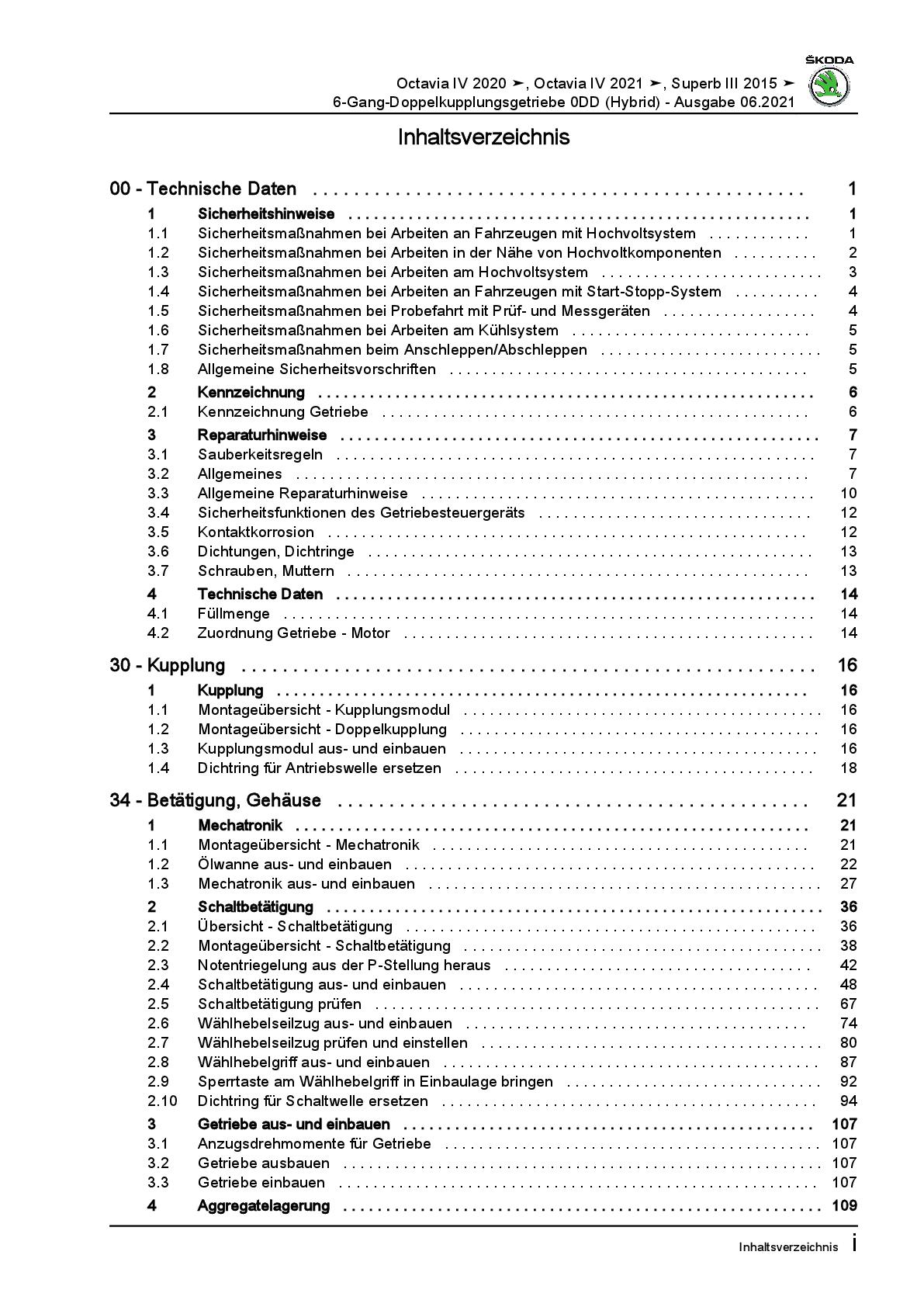 SKODA Superb 3V ab 2015 6 Gang Automatikgetriebe DSG DKG 0DD Reparaturanleitung
