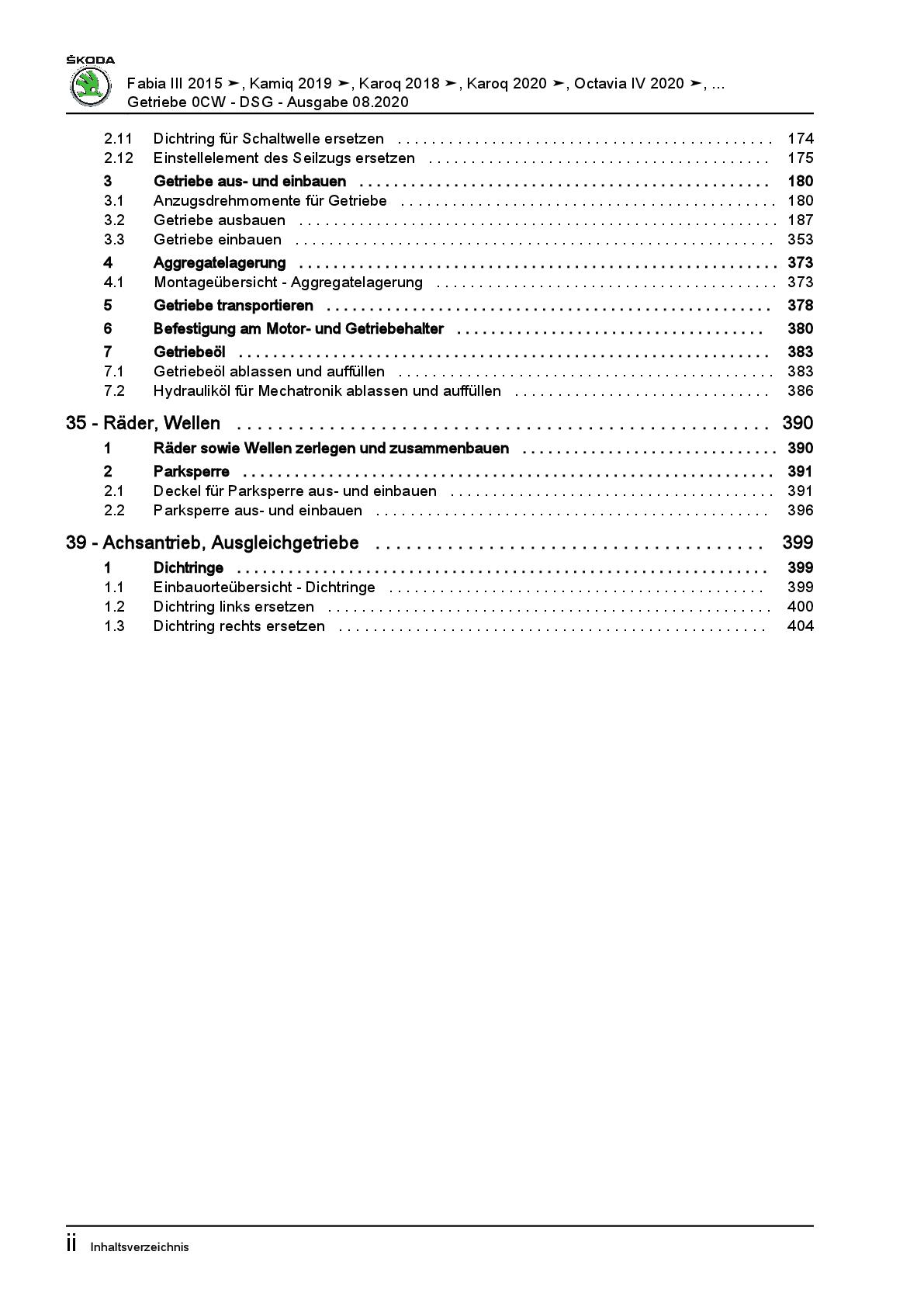 SKODA Superb 3V ab 2015 7 Gang Automatikgetriebe DSG DKG 0CW Reparaturanleitung