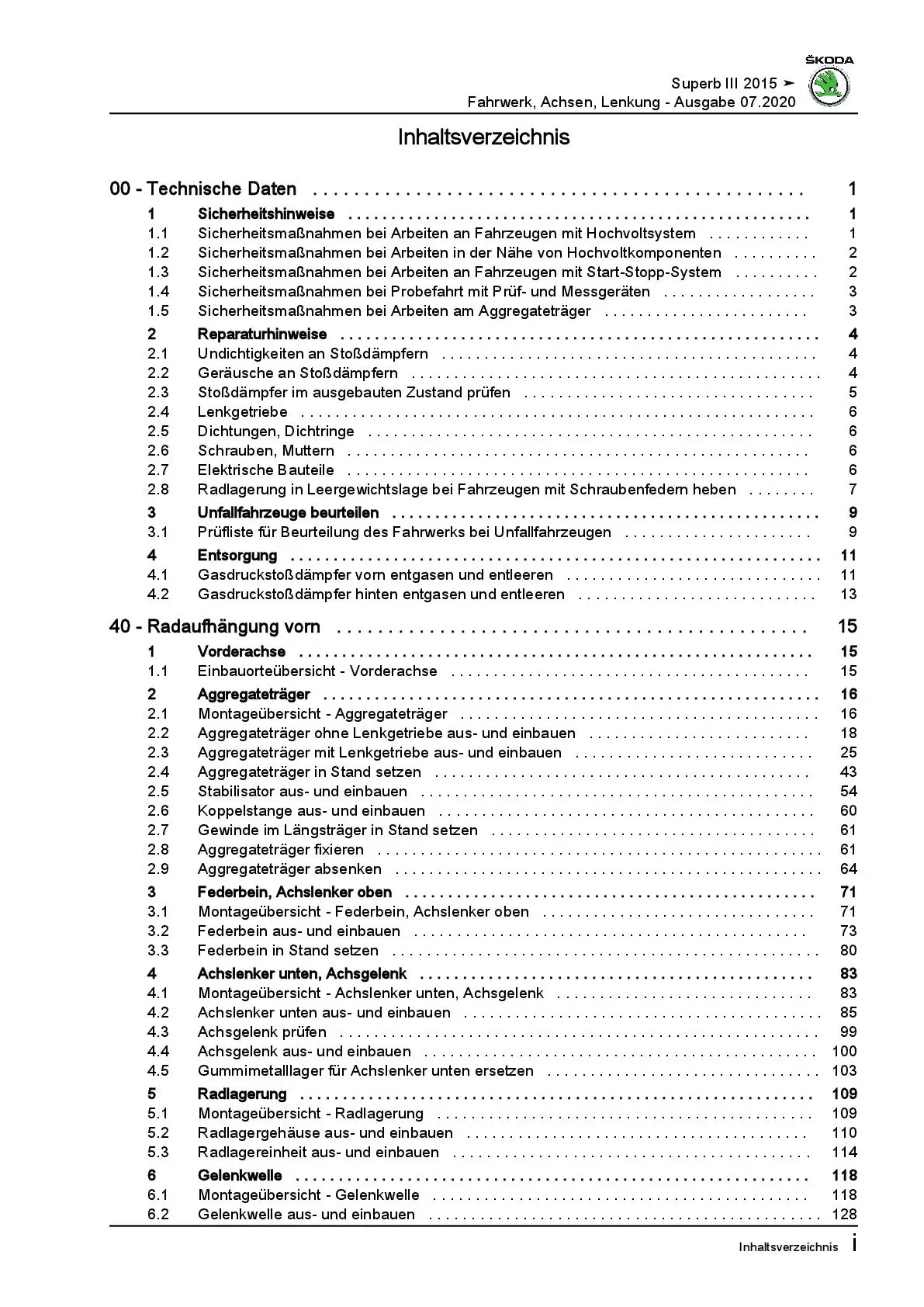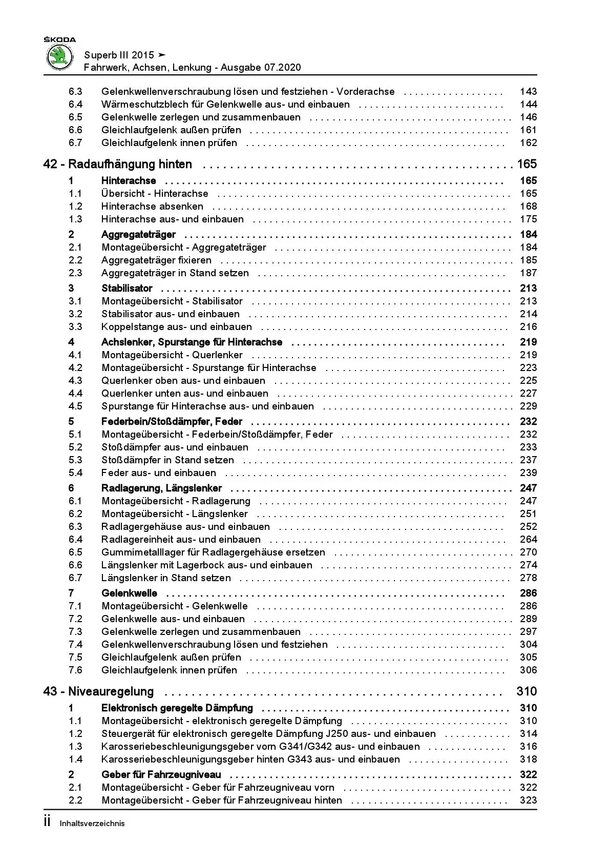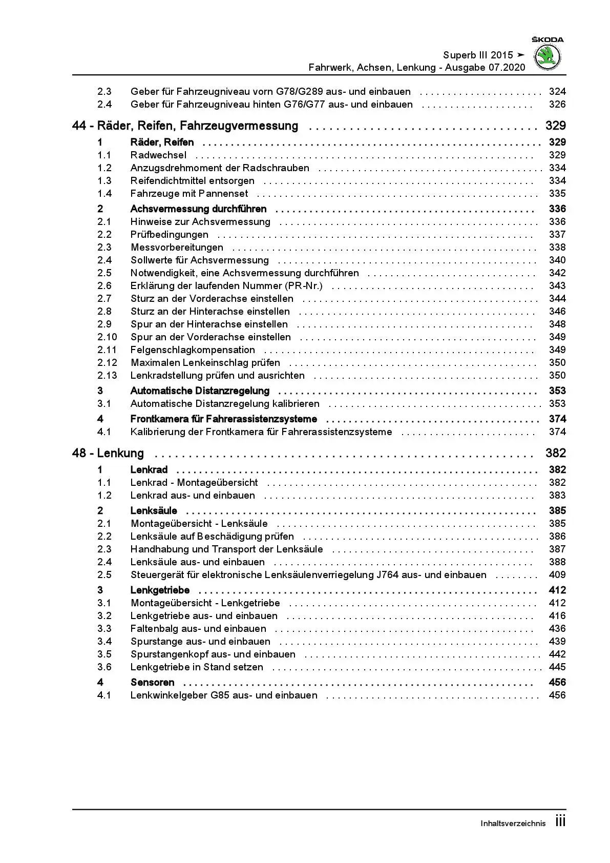 SKODA Superb Typ 3V ab 2015 Fahrwerk Achsen Lenkung Reparaturanleitung