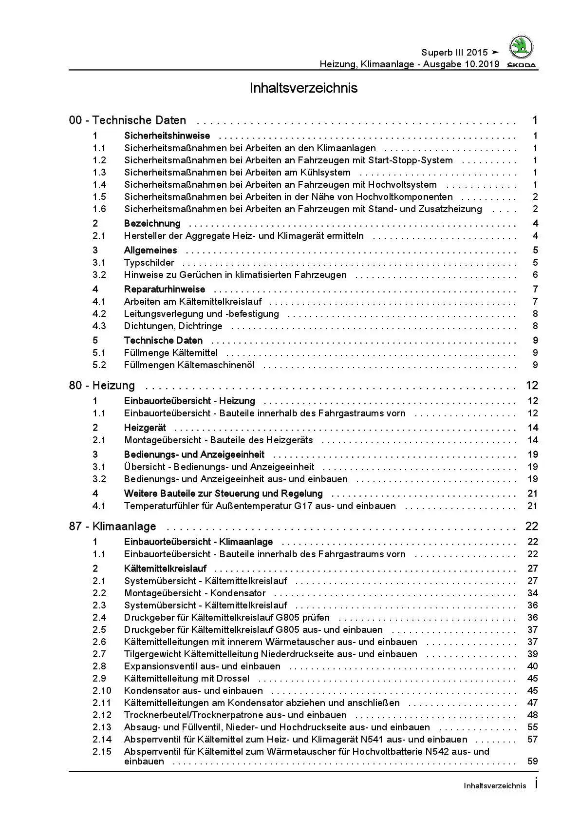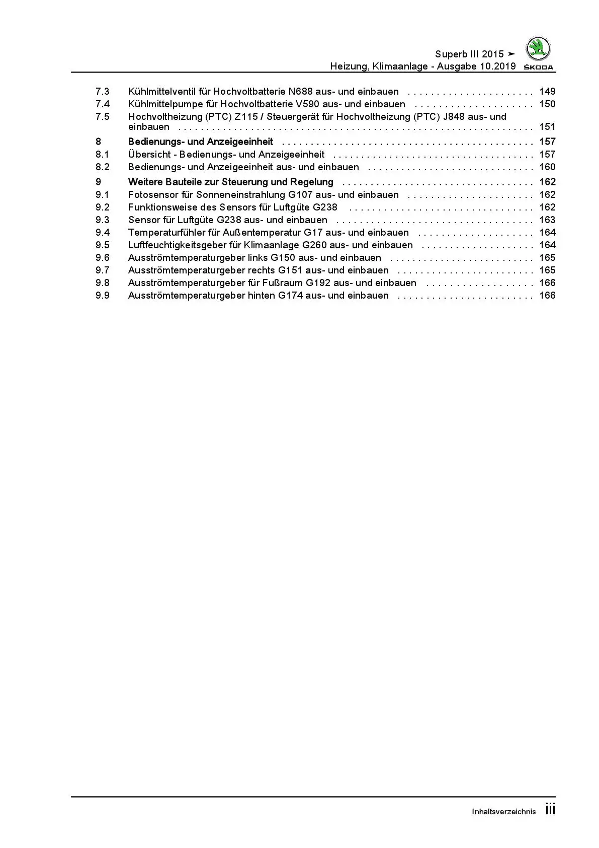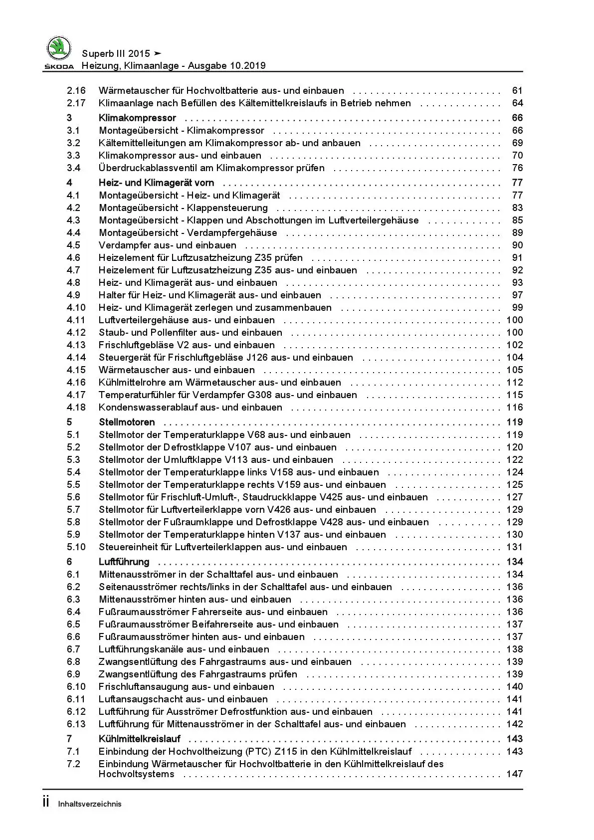 SKODA Superb Typ 3V ab 2015 Heizung Belüftung Klimaanlage Reparaturanleitung