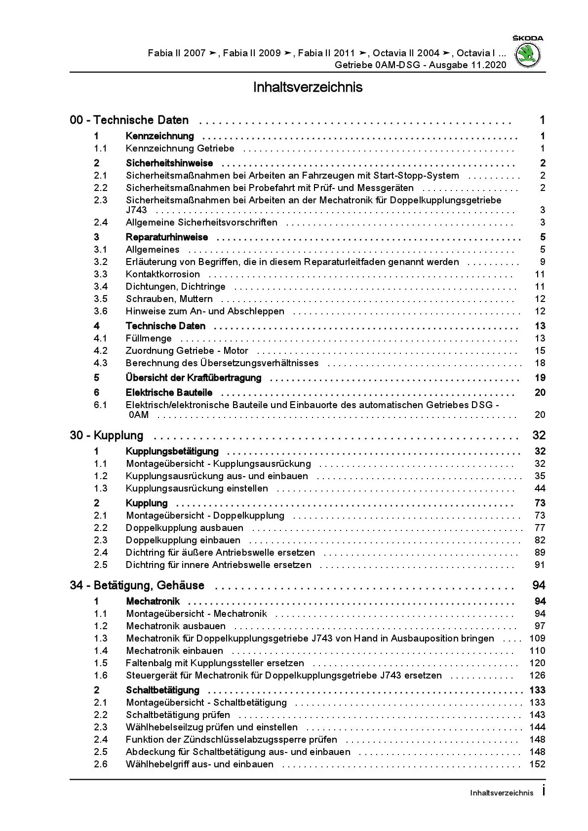 Skoda Yeti 5L (09-17) 7 Gang Automatikgetriebe DSG DKG 0AM Reparaturanleitung