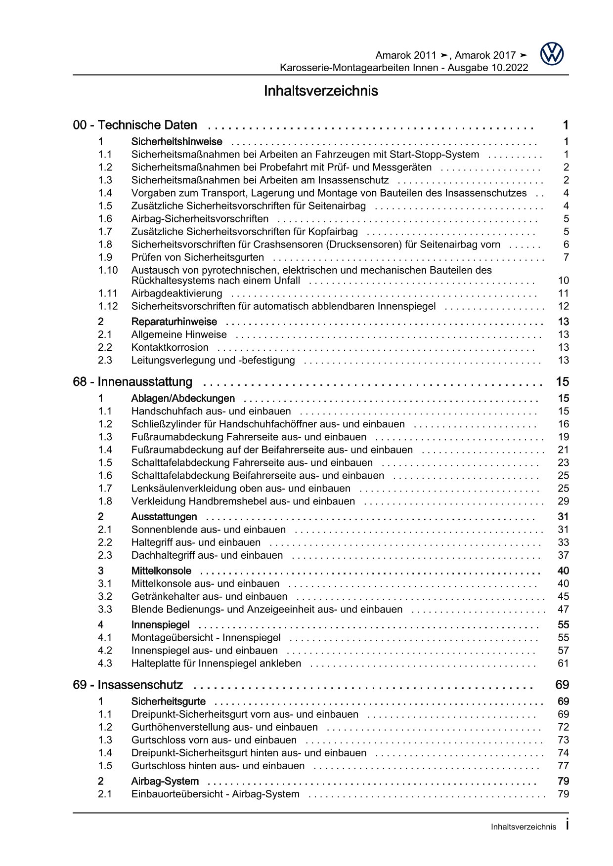 Offizieller Volkswagen Amarok Reparaturleitfaden (Typ 2H, 2H0, 2HA, 2HB, S1)