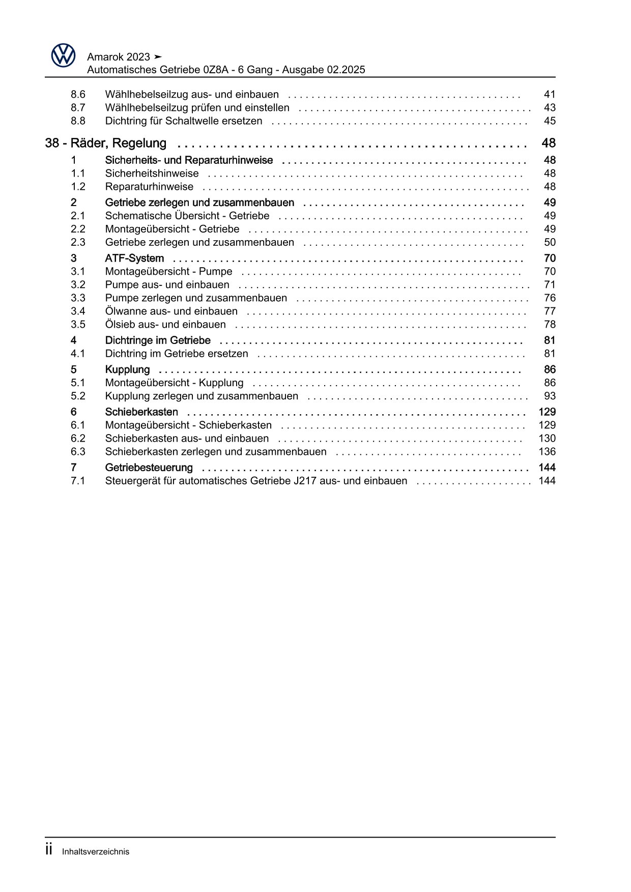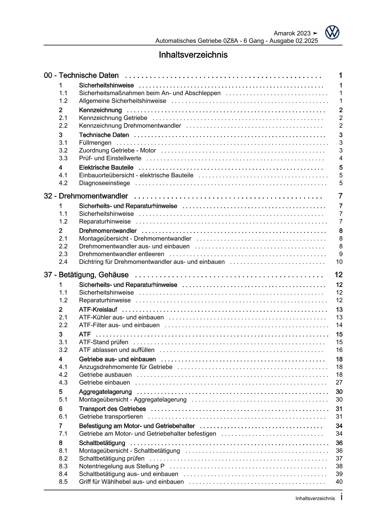 VW Amarok Typ T1 ab 2022 6 Gang Automatisches Getriebe 0ZB Reparaturanleitung