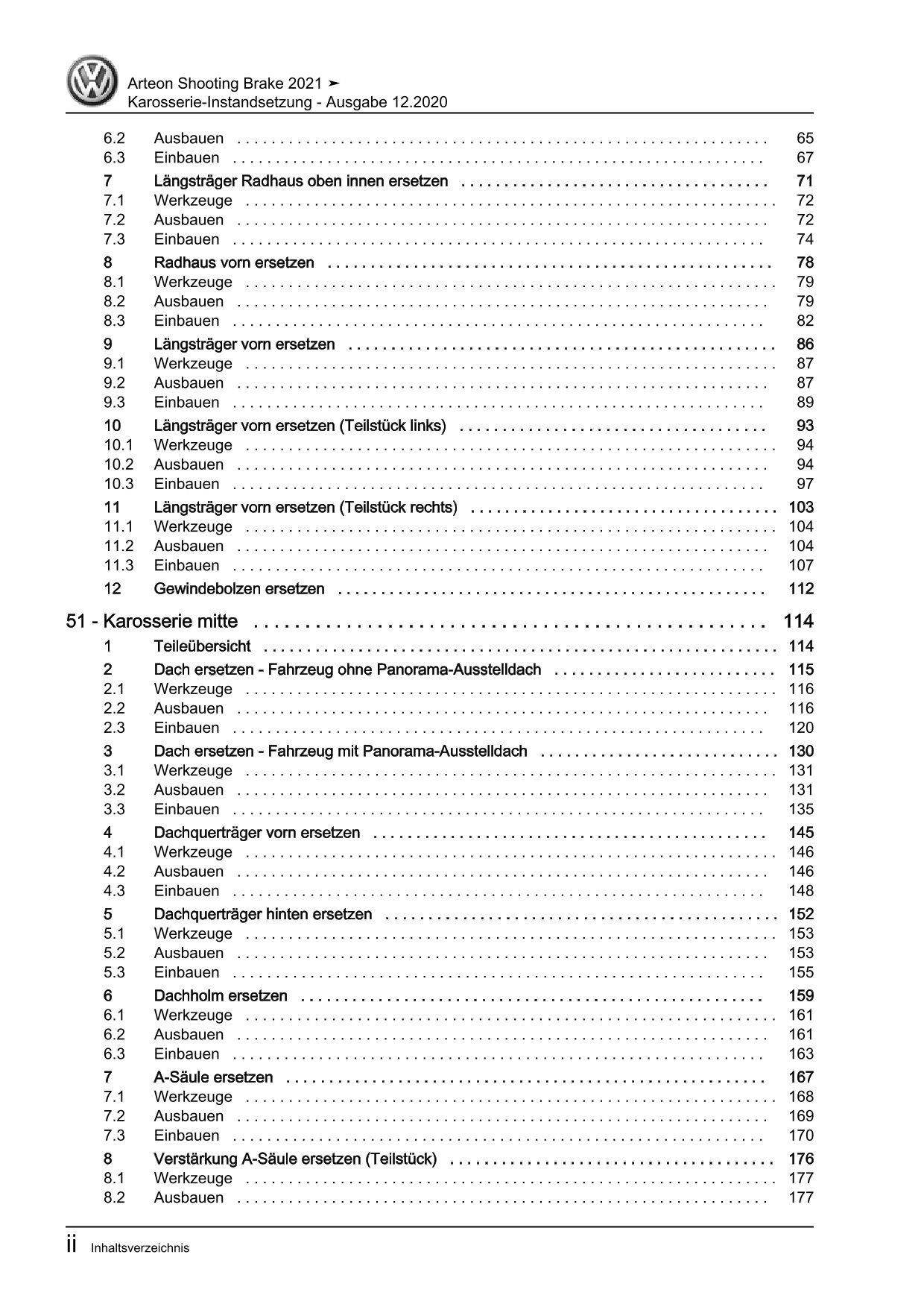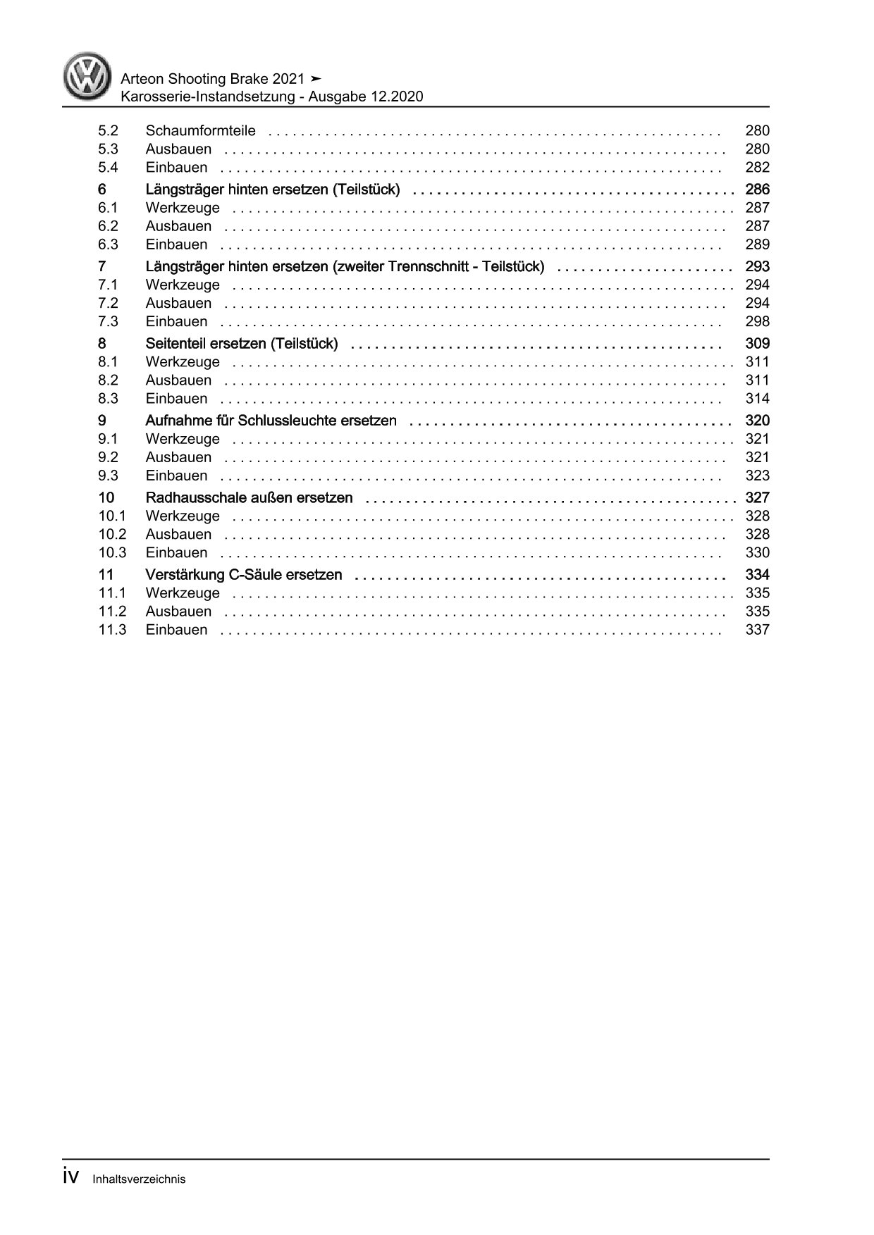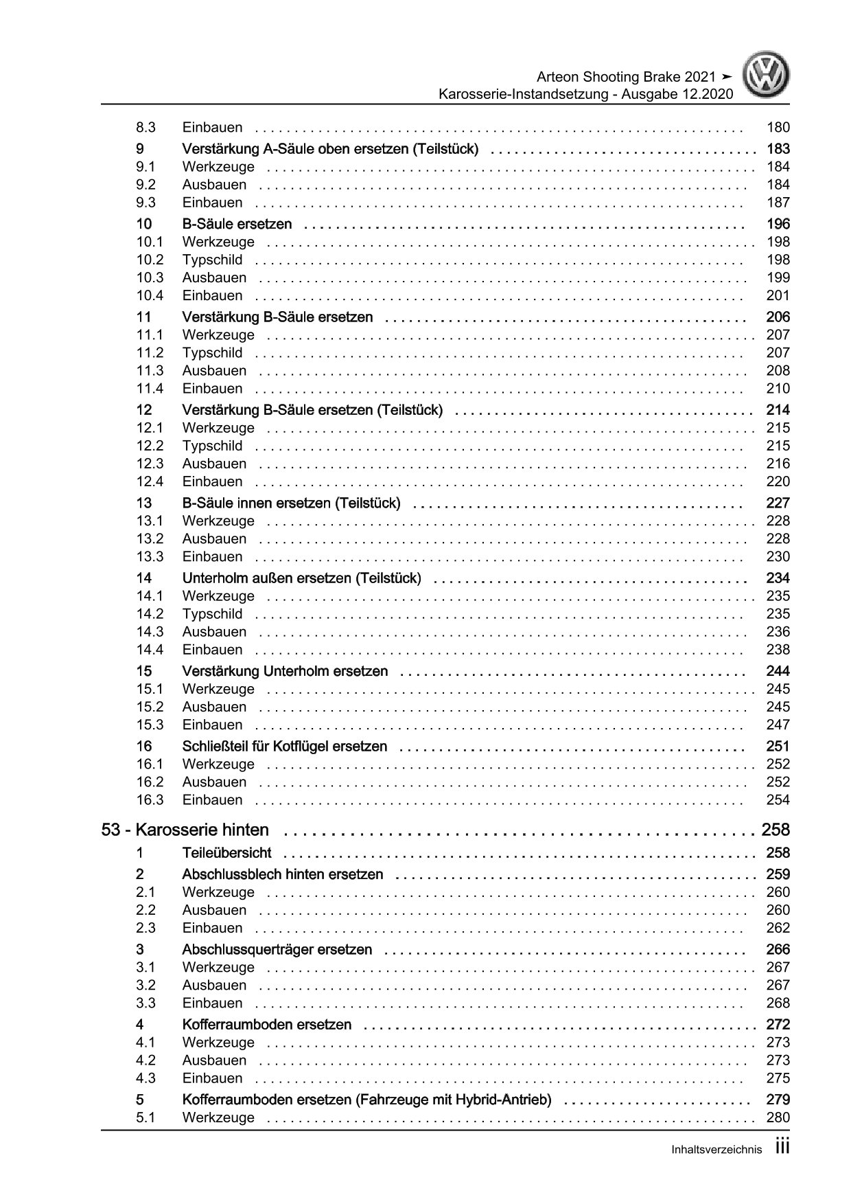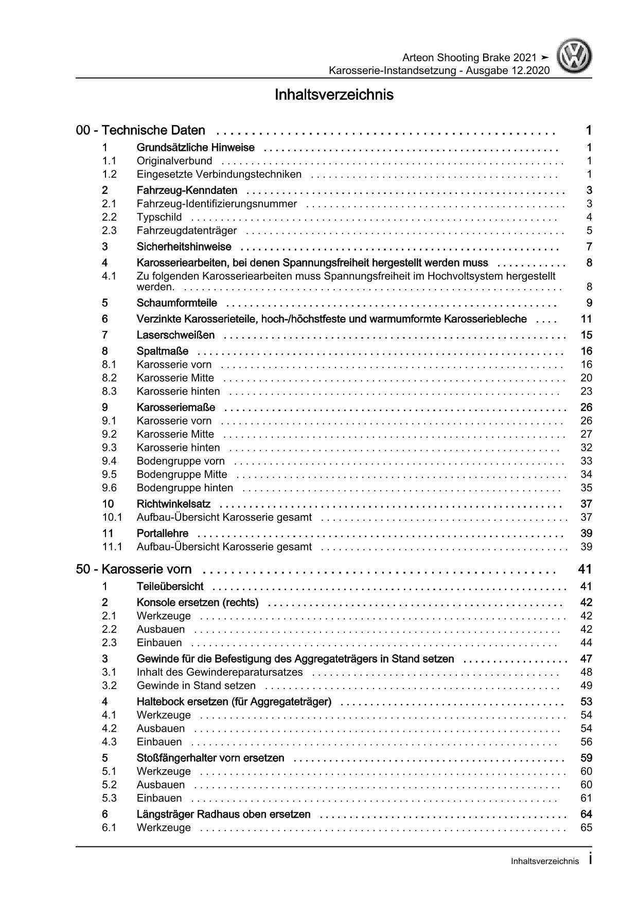 Offizieller Volkswagen Arteon Shooting Brake Reparaturleitfaden (Typ 3H, 3H9)