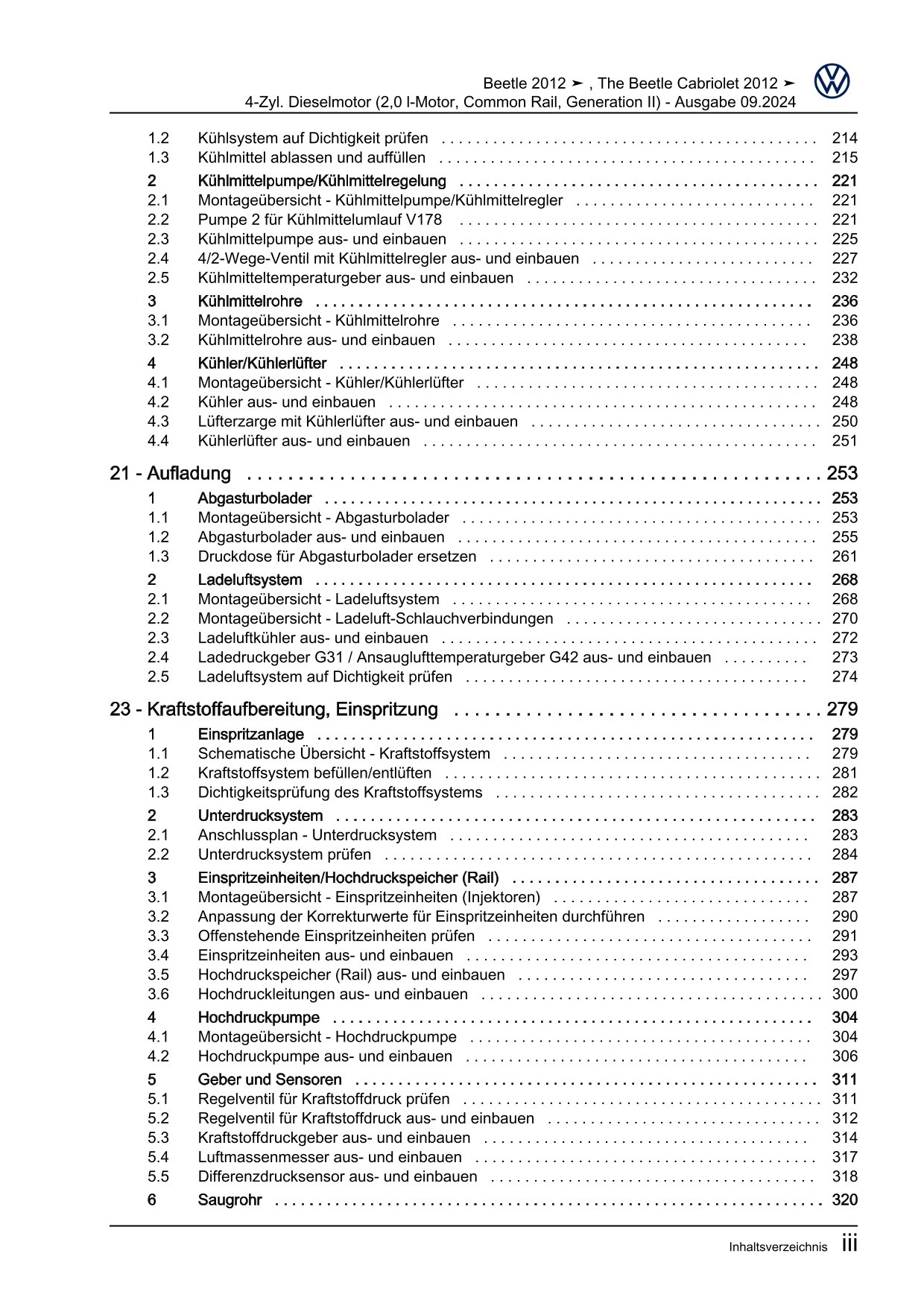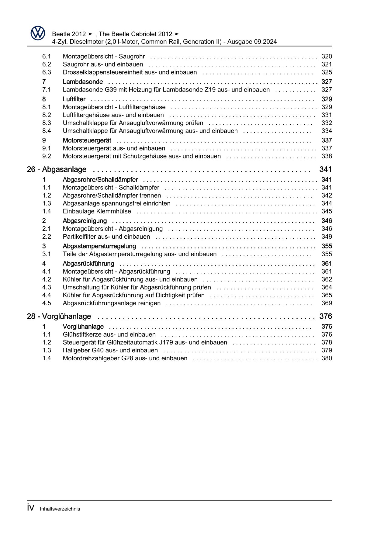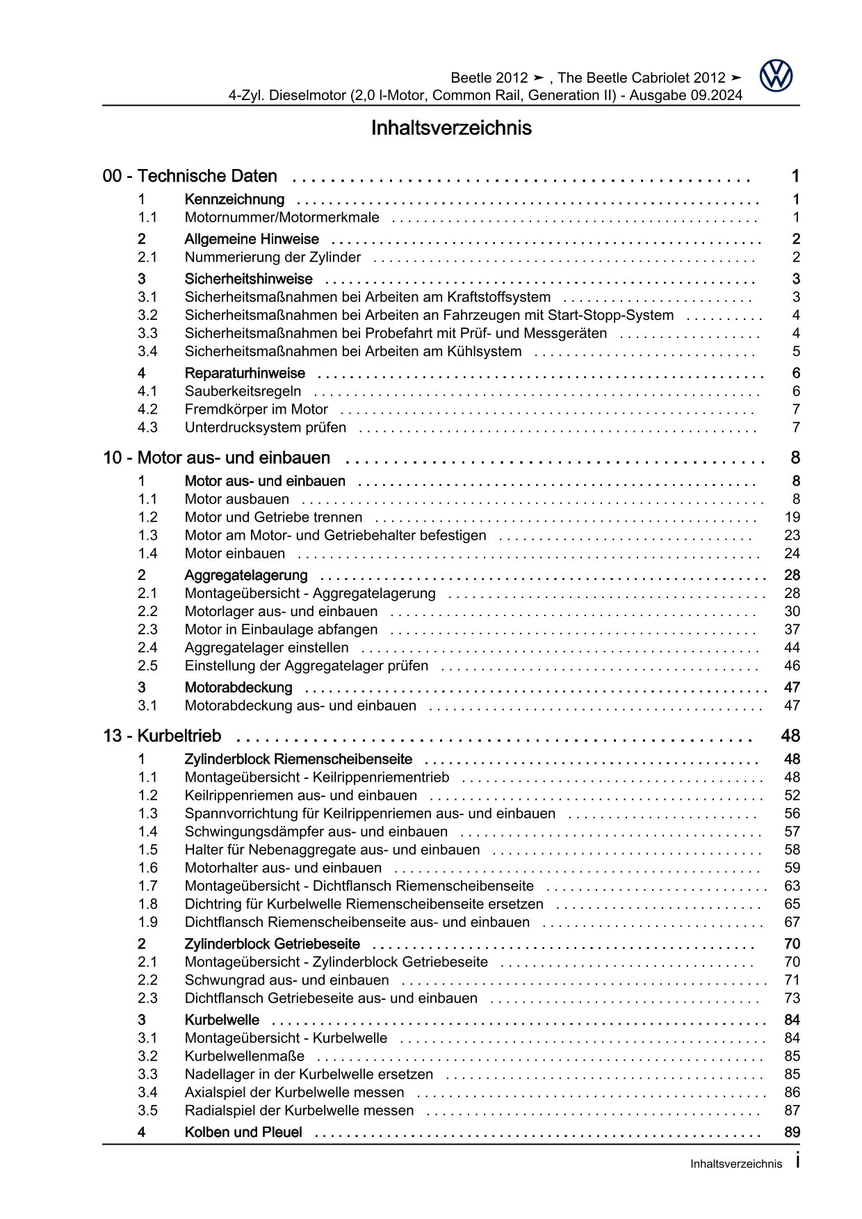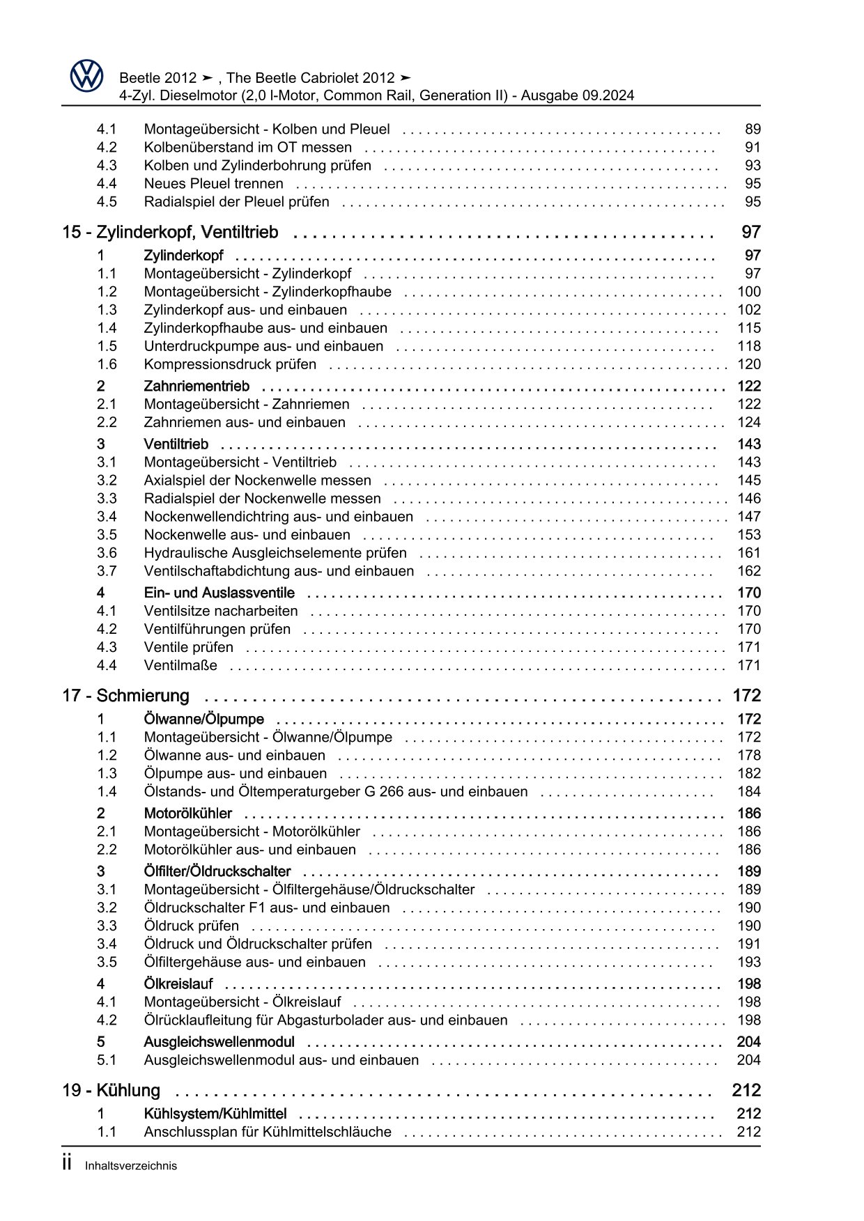 VW Beetle Typ 5C 2011-2016 4-Zyl. Dieselmotor 2,0l 140 PS Reparaturanleitung