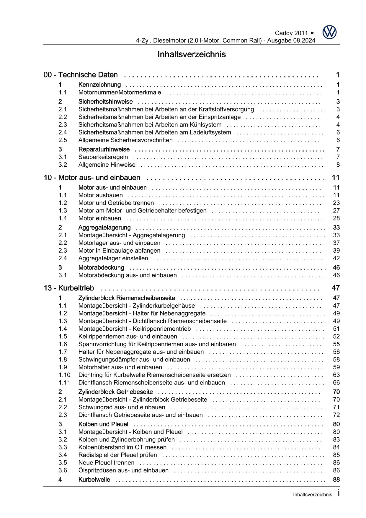 Offizieller Volkswagen Caddy Reparaturleitfaden (Typ 2C, 2CA, 2CB, 2CH, 2CJ, 2C0, 2K)