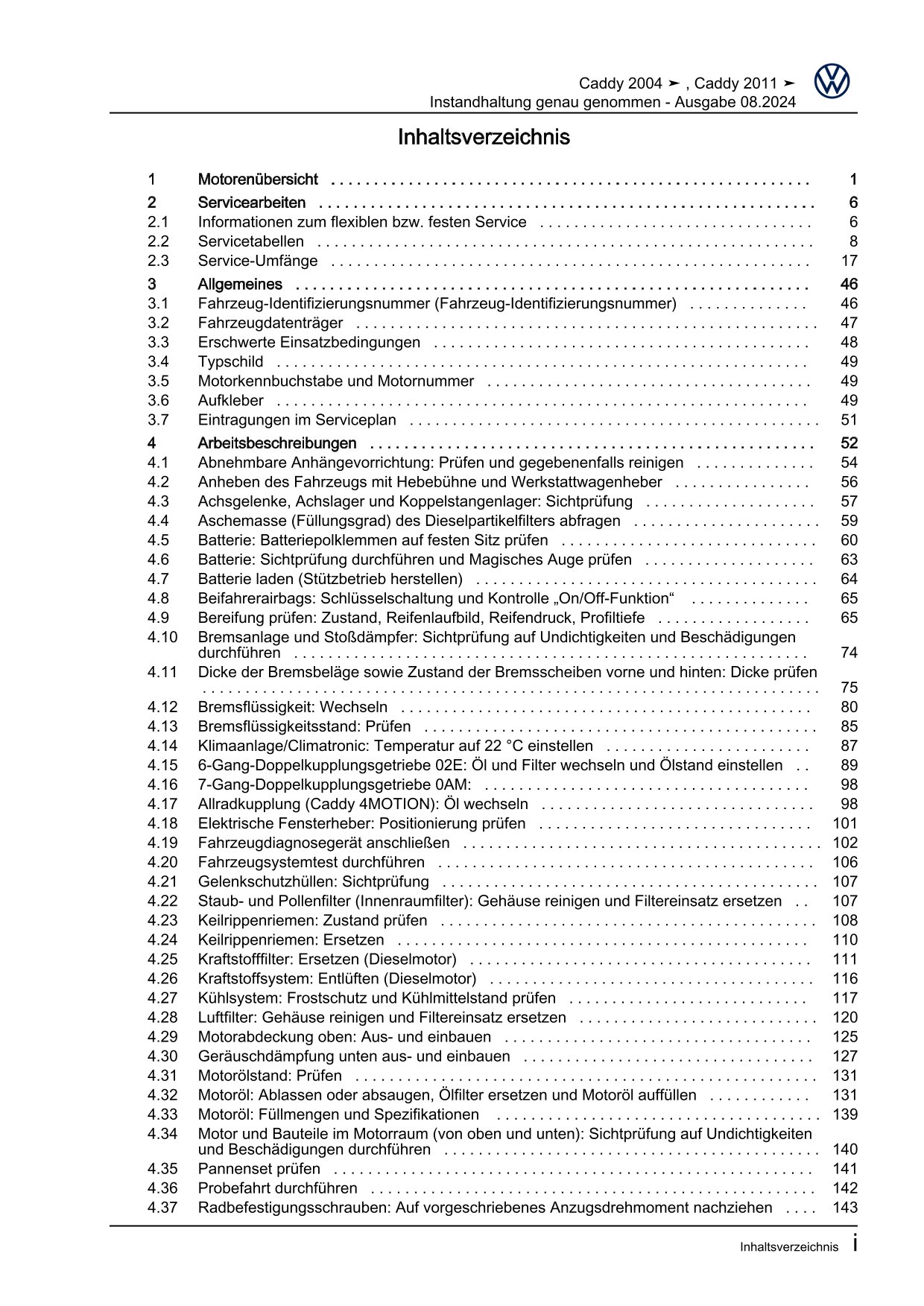 Offizieller Volkswagen Caddy Reparaturleitfaden (Typ 2C, 2CA, 2CB, 2CH, 2CJ, 2C0, 2K)