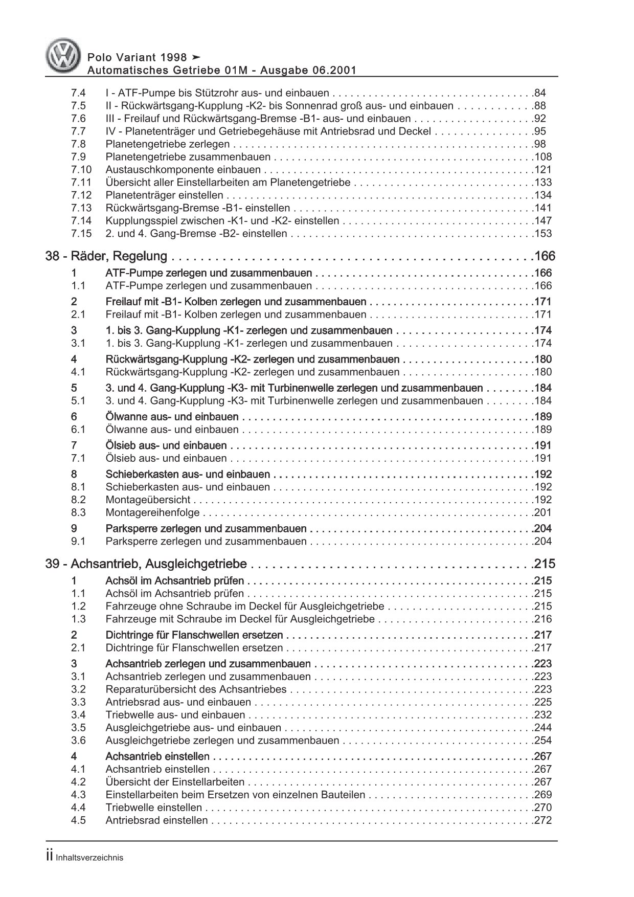 Diese Reparaturanleitung enthält detaillierte Beschreibungen zu Aus- und Einbauarbeiten, Einstell- und Prüfarbeiten sowie zahlreiche Grafiken, Bilder und Explosionszeichnungen. Die Kunststoffringbindung ermöglicht ein problemloses Umschlagen bis zu 180°.