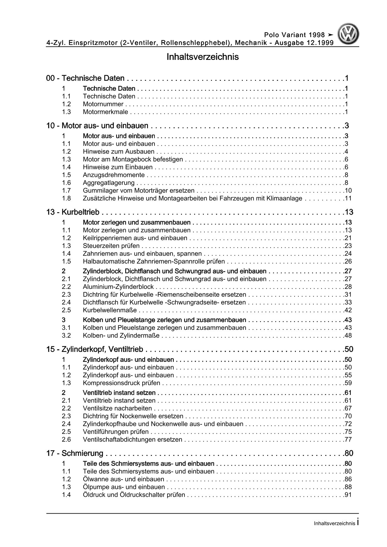 Diese Reparaturanleitung enthält detaillierte Beschreibungen zu Aus- und Einbauarbeiten, Einstell- und Prüfarbeiten sowie zahlreiche Grafiken, Bilder und Explosionszeichnungen. Die Kunststoffringbindung ermöglicht ein problemloses Umschlagen bis zu 180°.