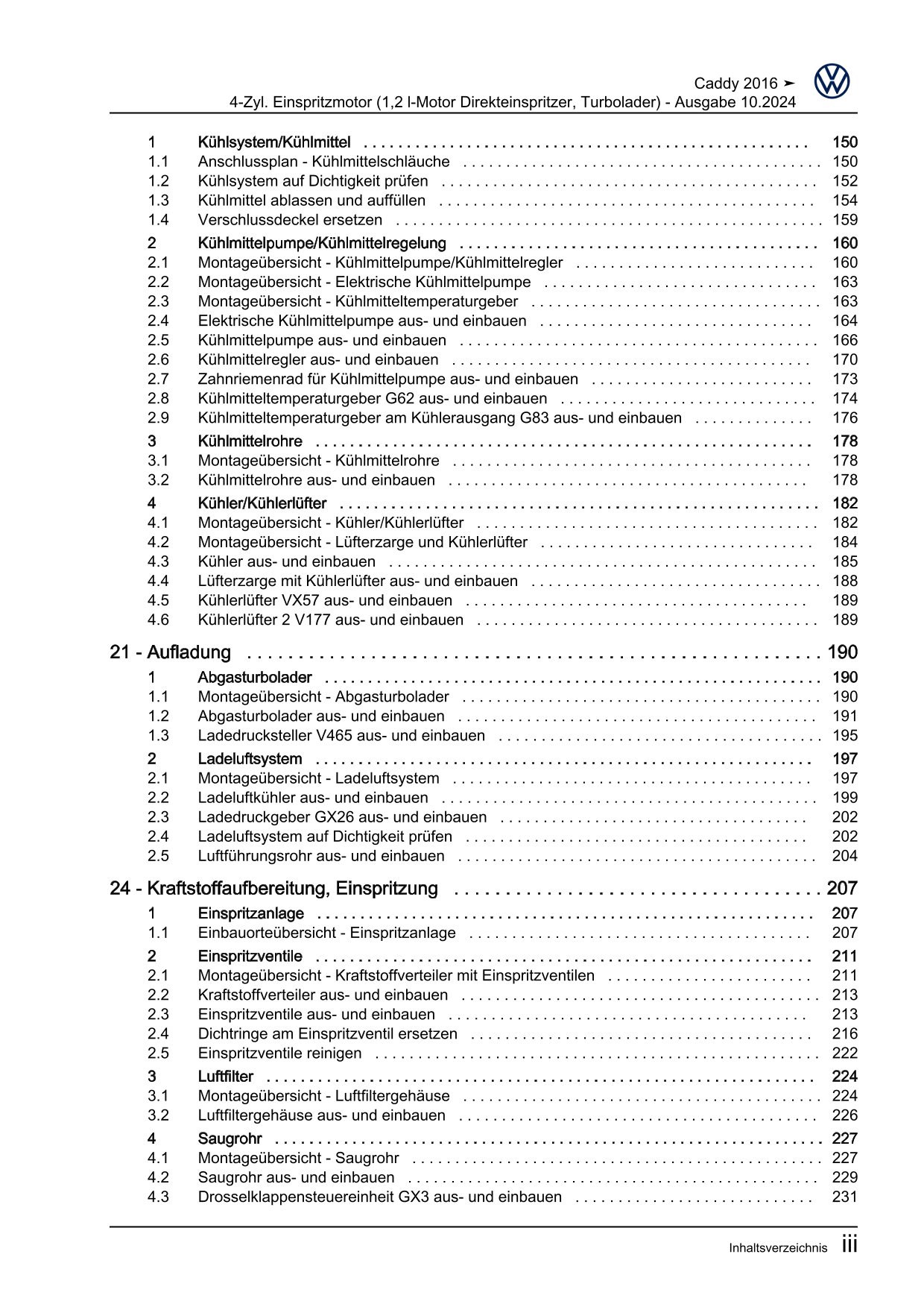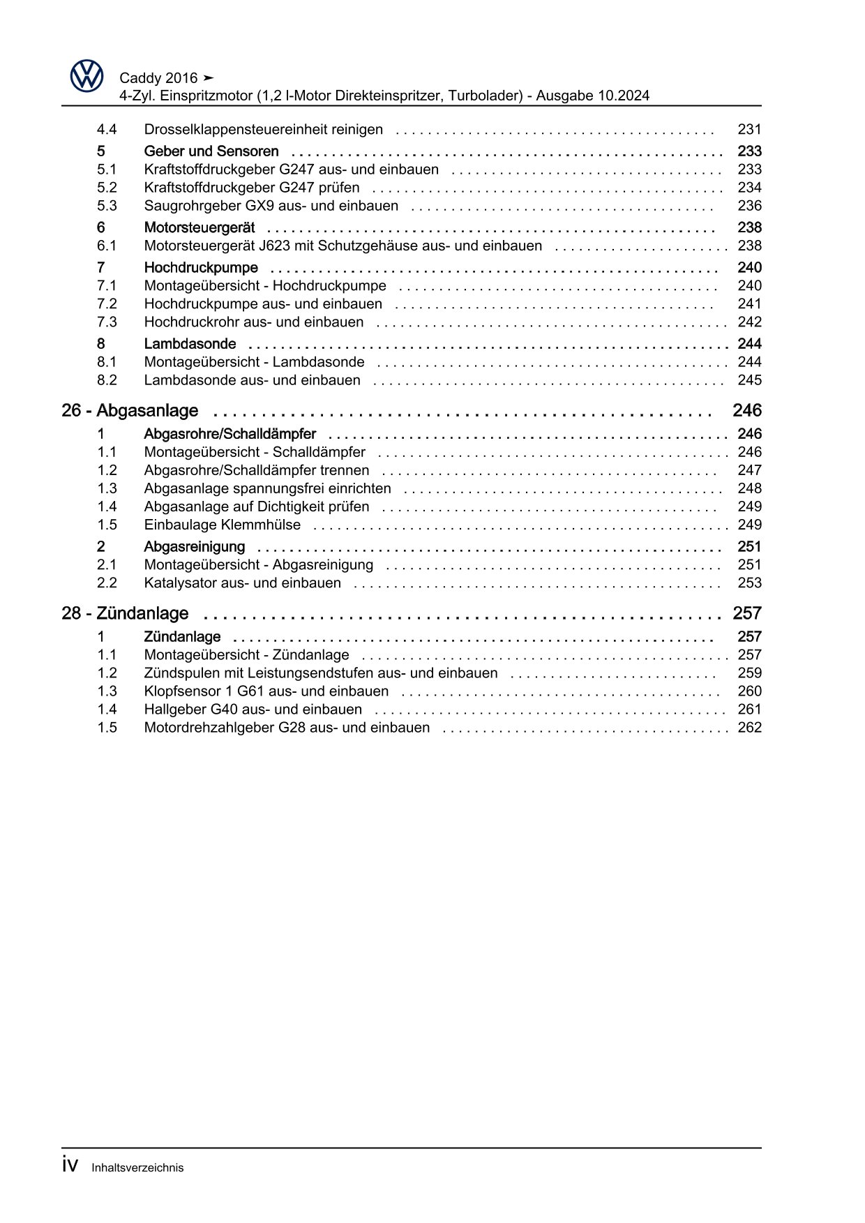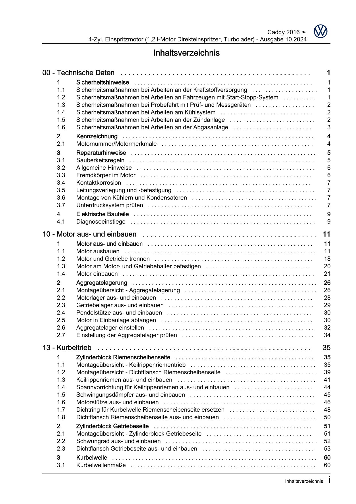 Offizieller Volkswagen Caddy Reparaturleitfaden (Typ SA, 2K)