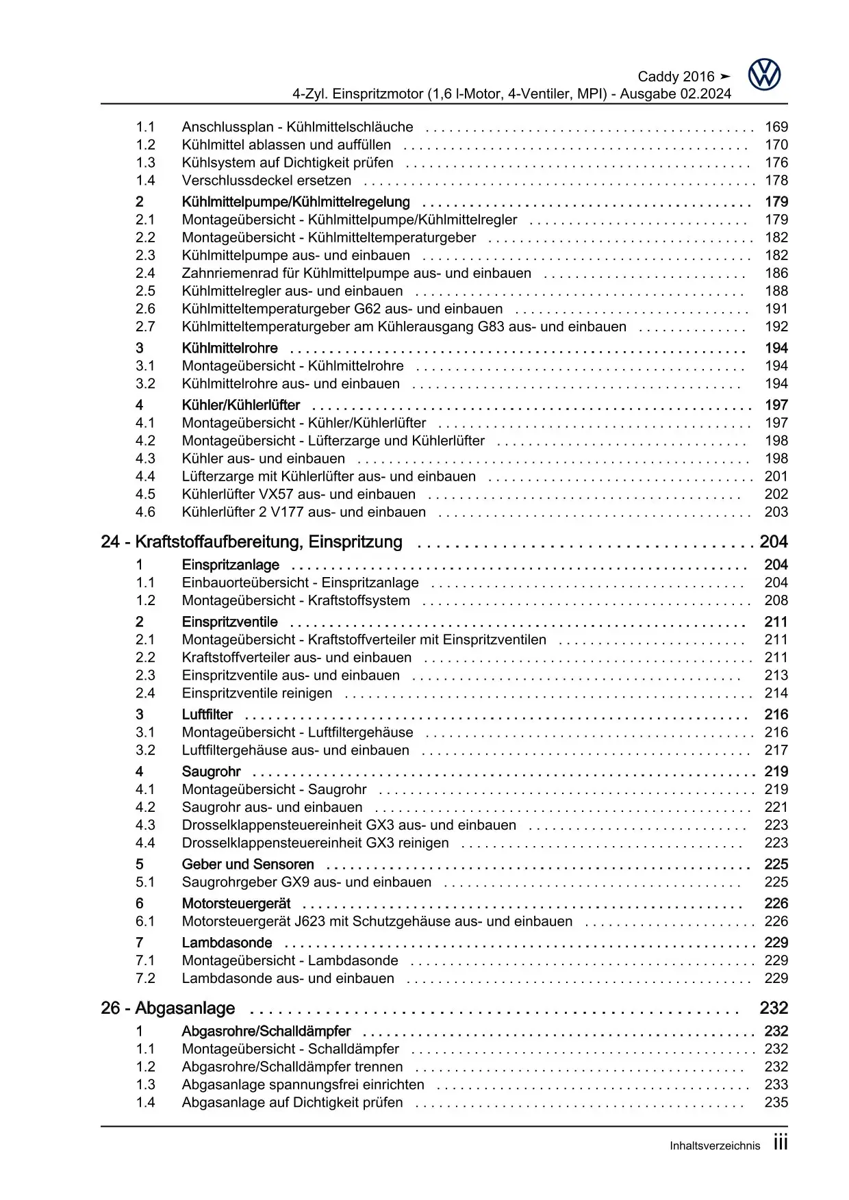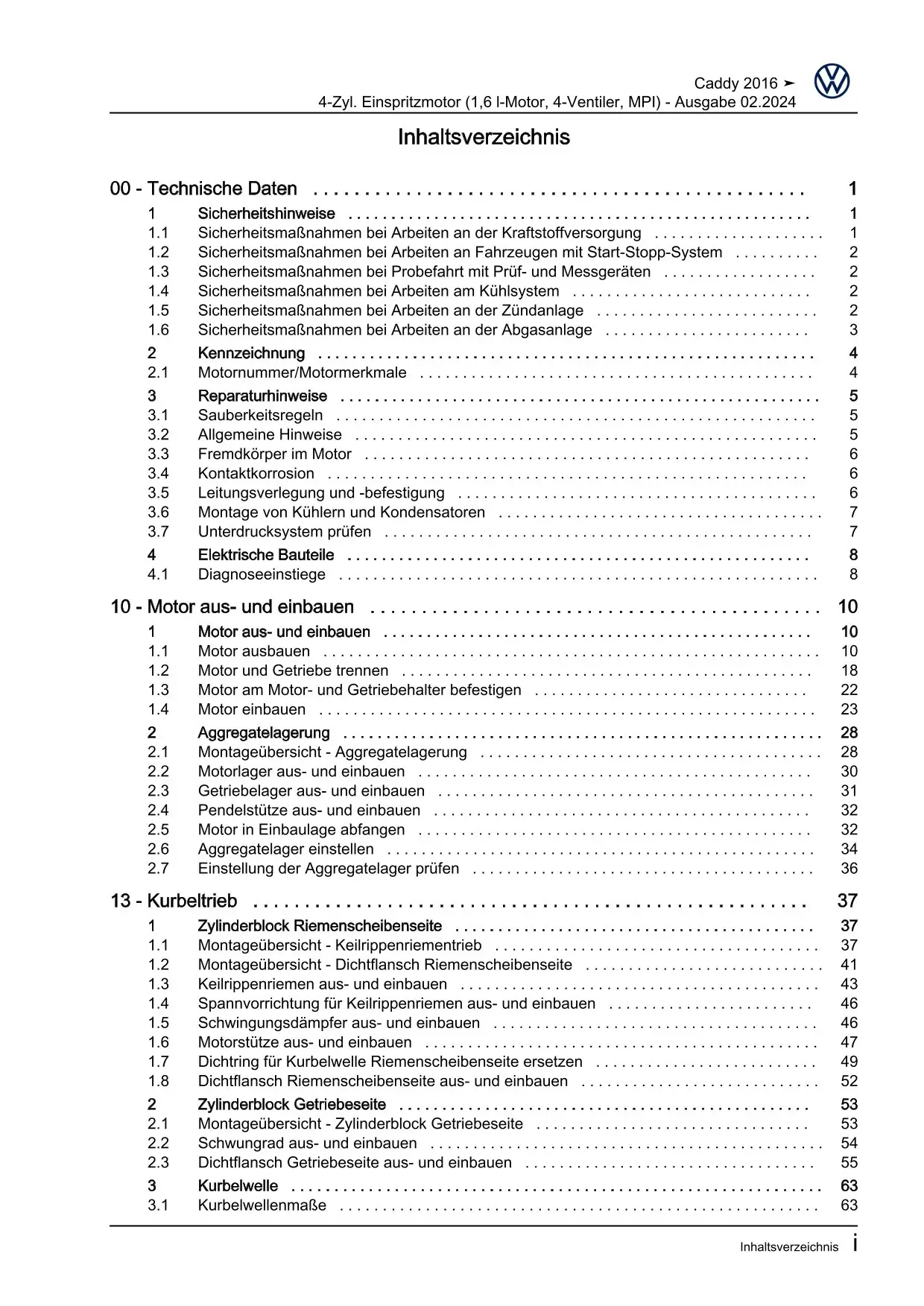 Offizieller Volkswagen Caddy Reparaturleitfaden (Typ SA, 2K)