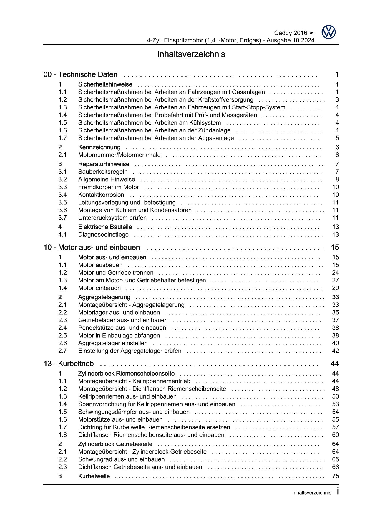 Offizieller Volkswagen Caddy Reparaturleitfaden (Typ SA, 2K)