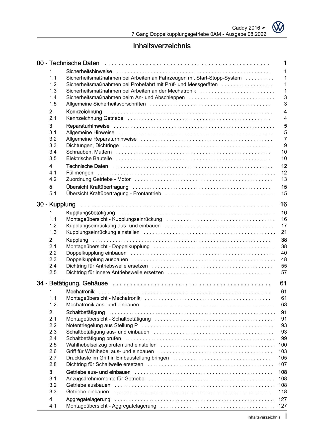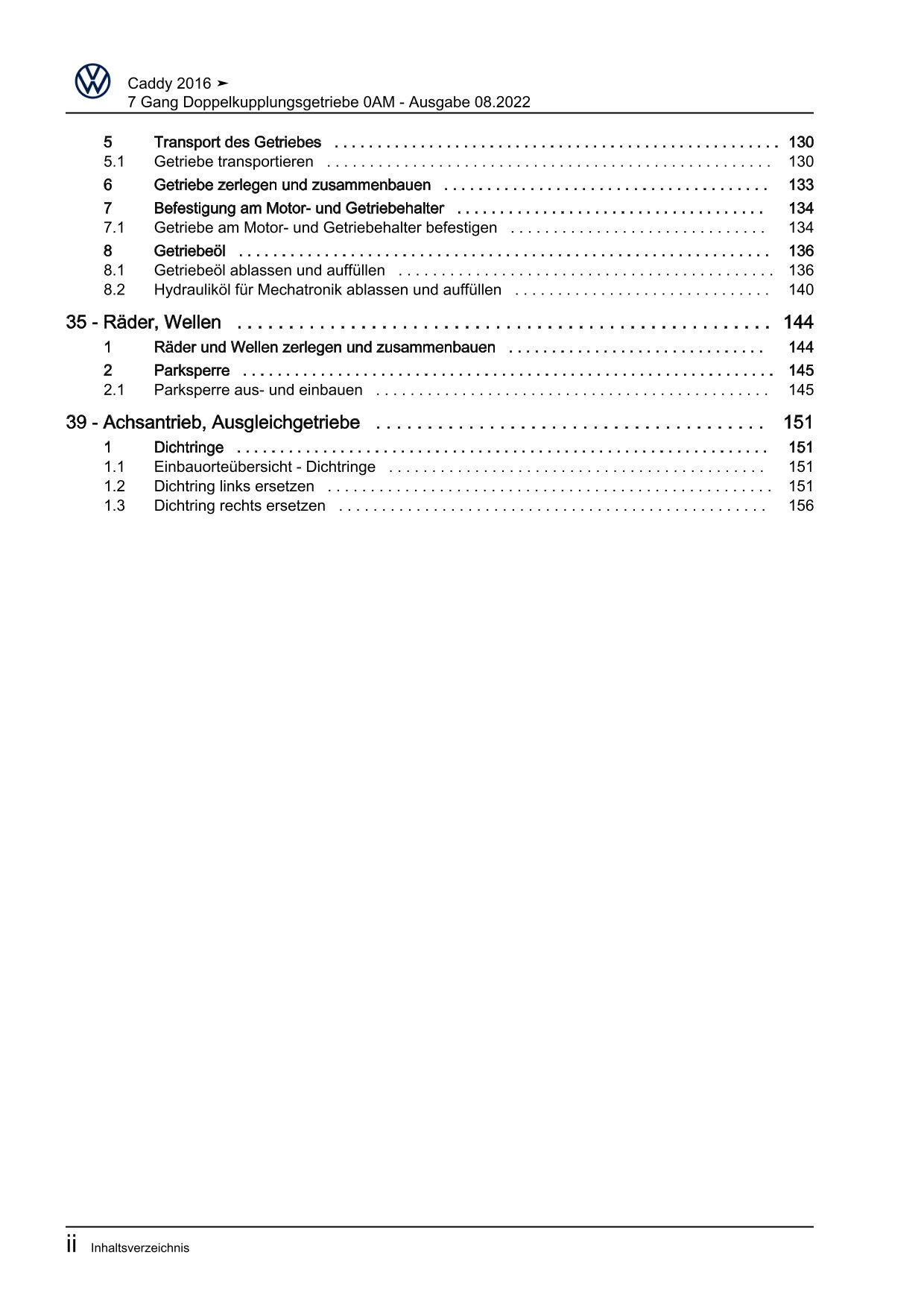Offizieller Volkswagen Caddy Reparaturleitfaden (Typ SA, 2K)
