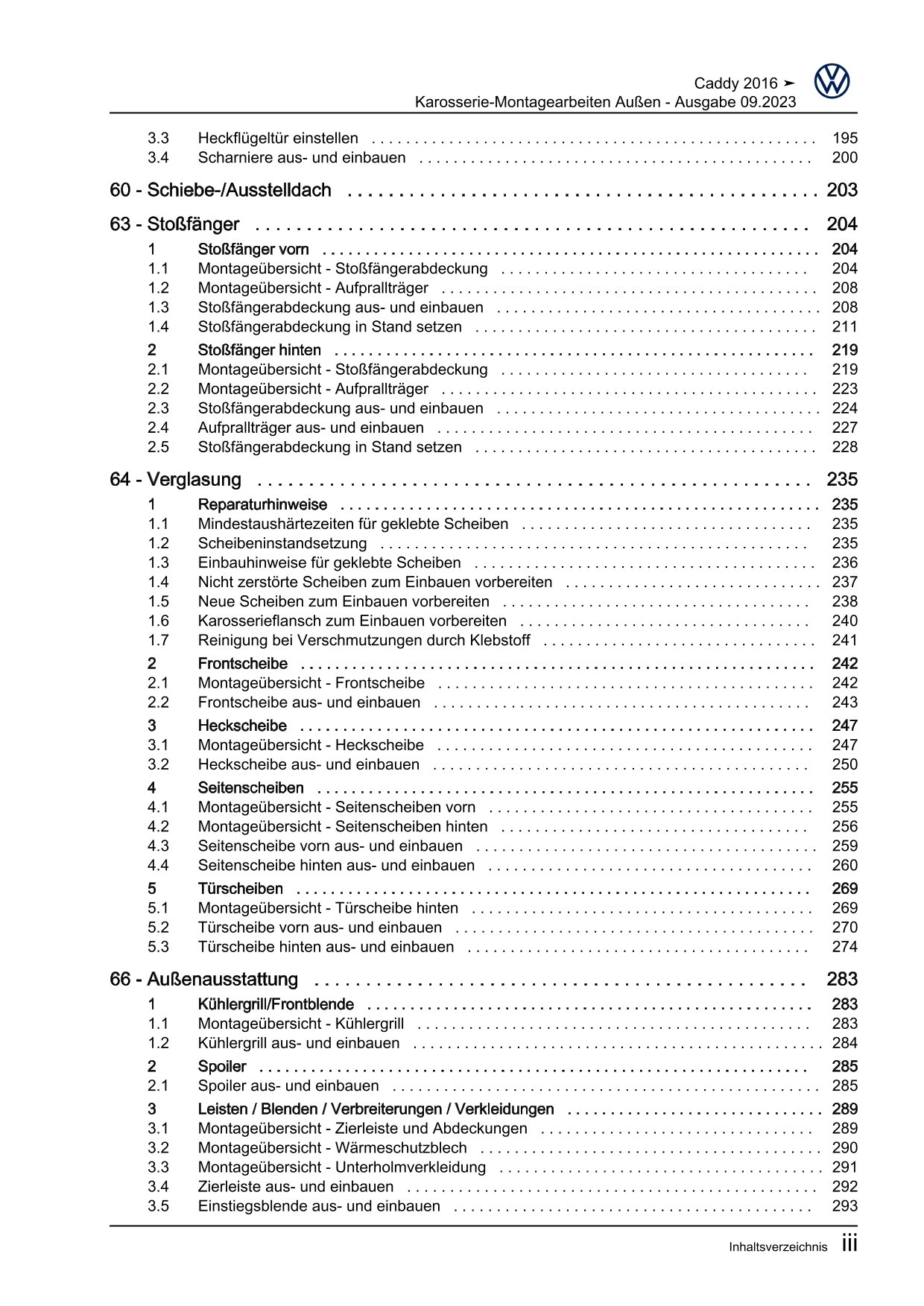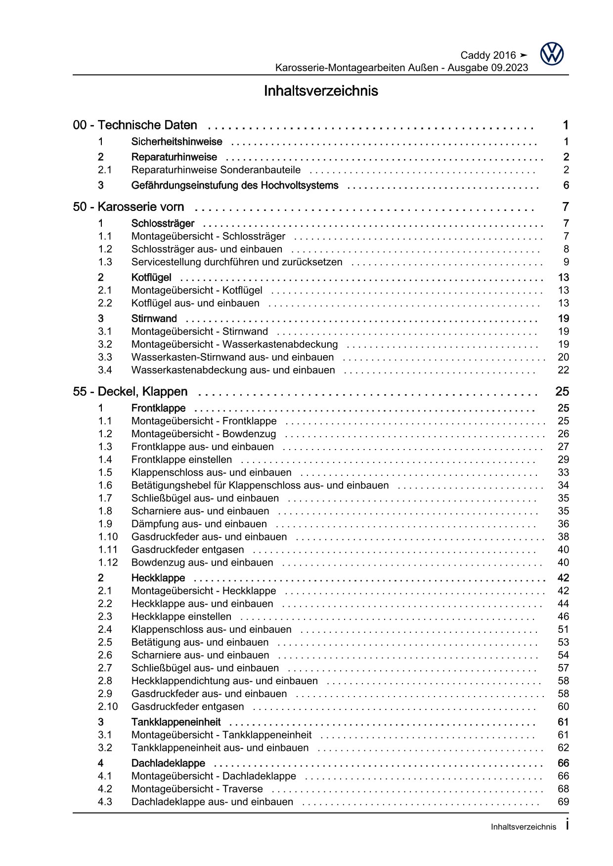 Offizieller Volkswagen Caddy Reparaturleitfaden (Typ SA, 2K)
