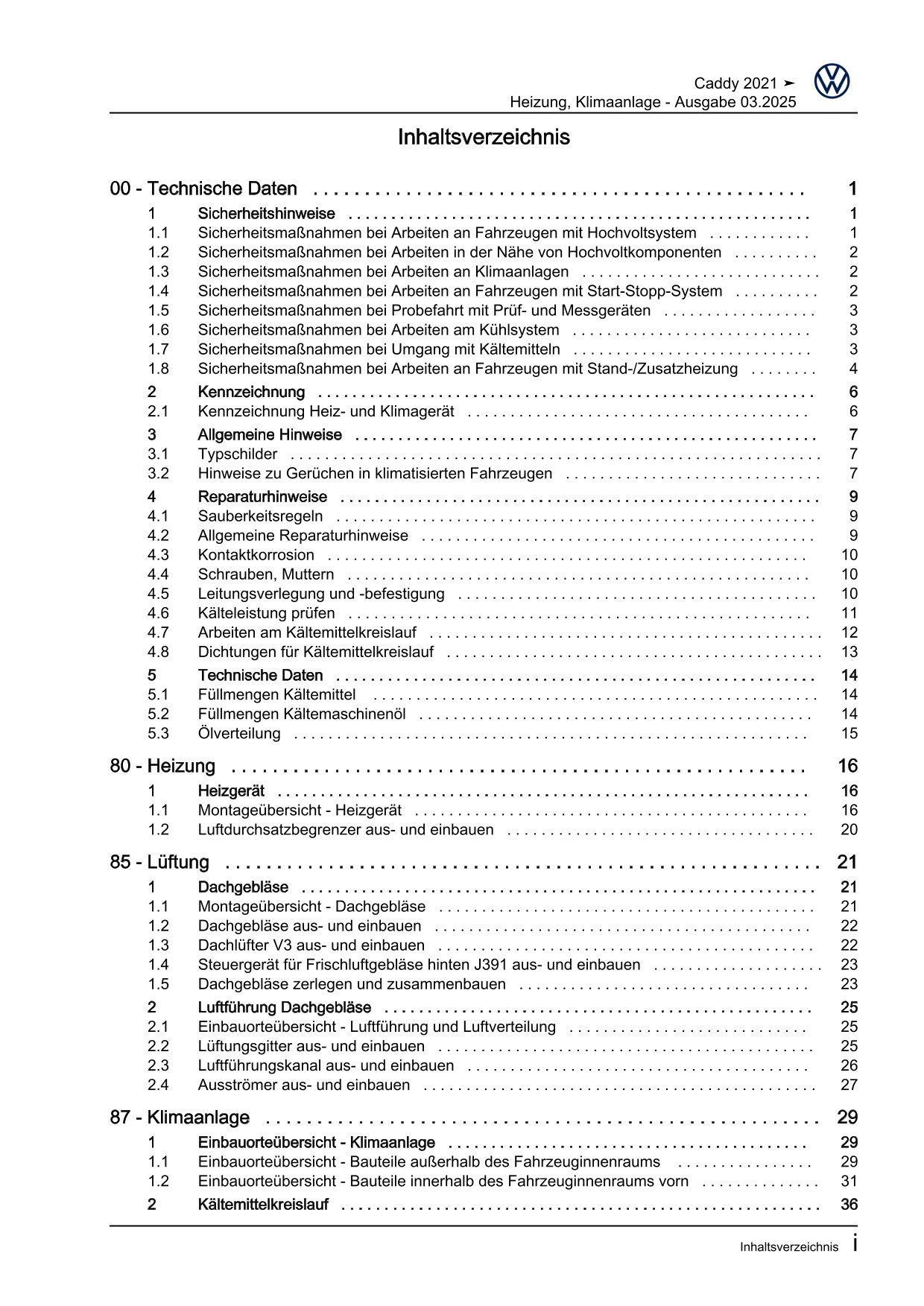 Offizieller Volkswagen VW Caddy Reparaturleitfaden