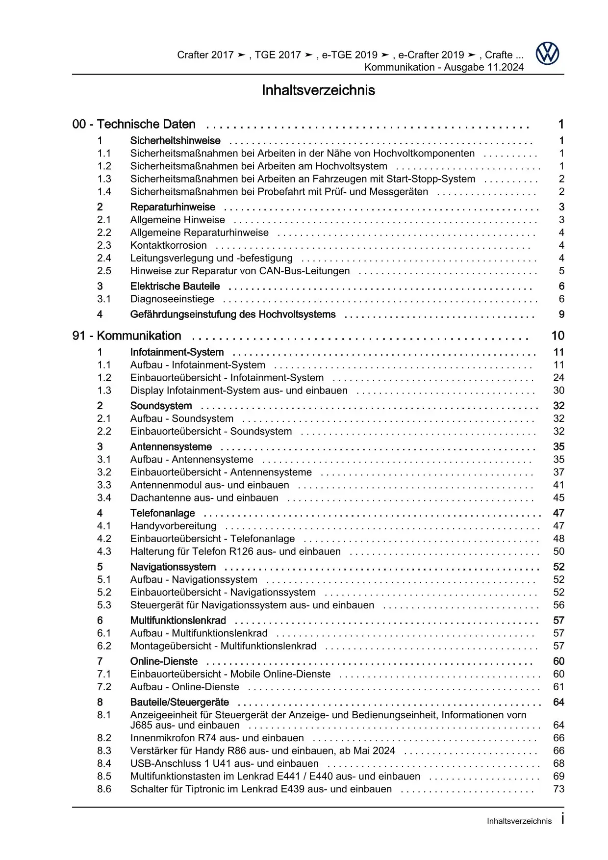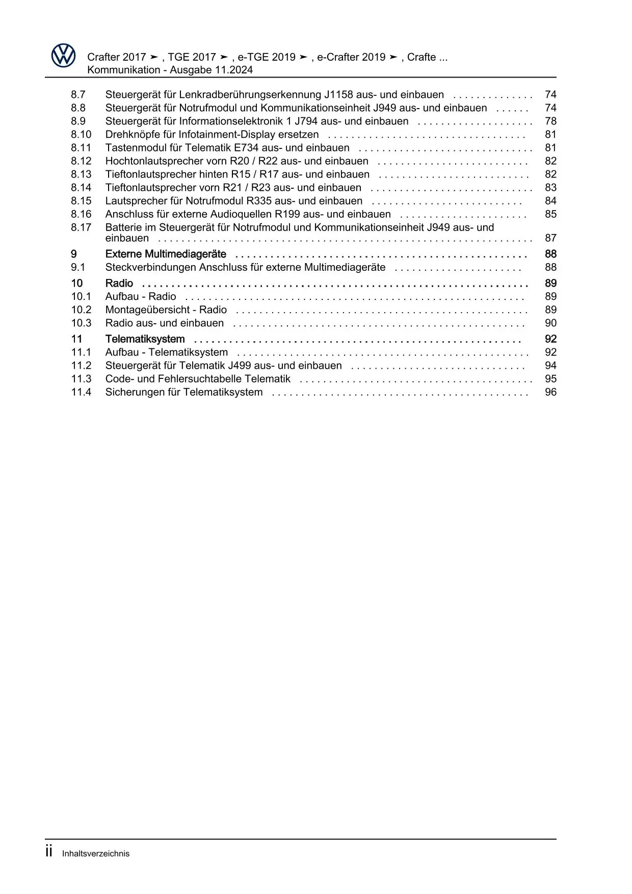 VW Crafter Typ SY SZ ab 2016 Kommunikation Radio Telefon Navi Reparaturanleitung