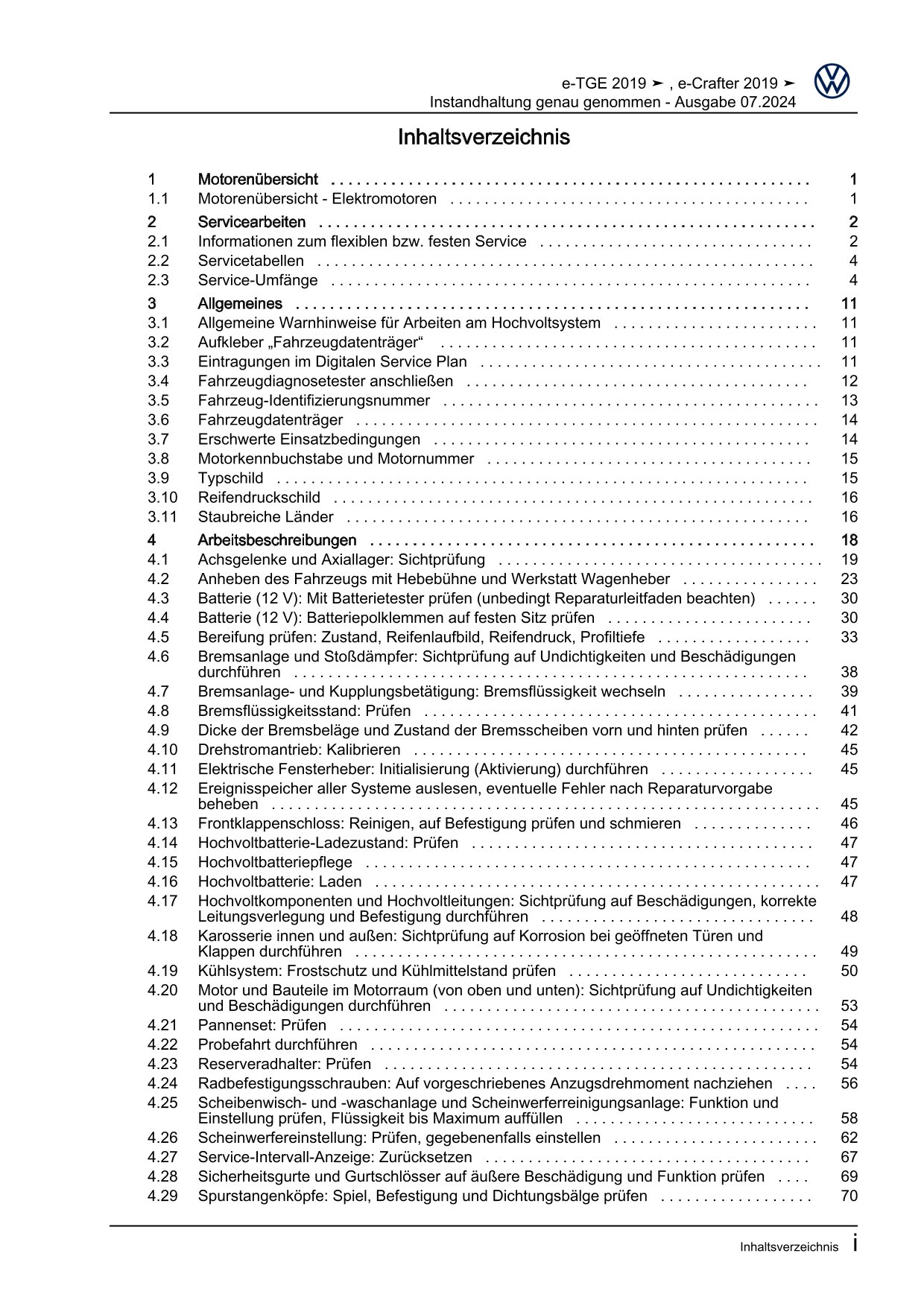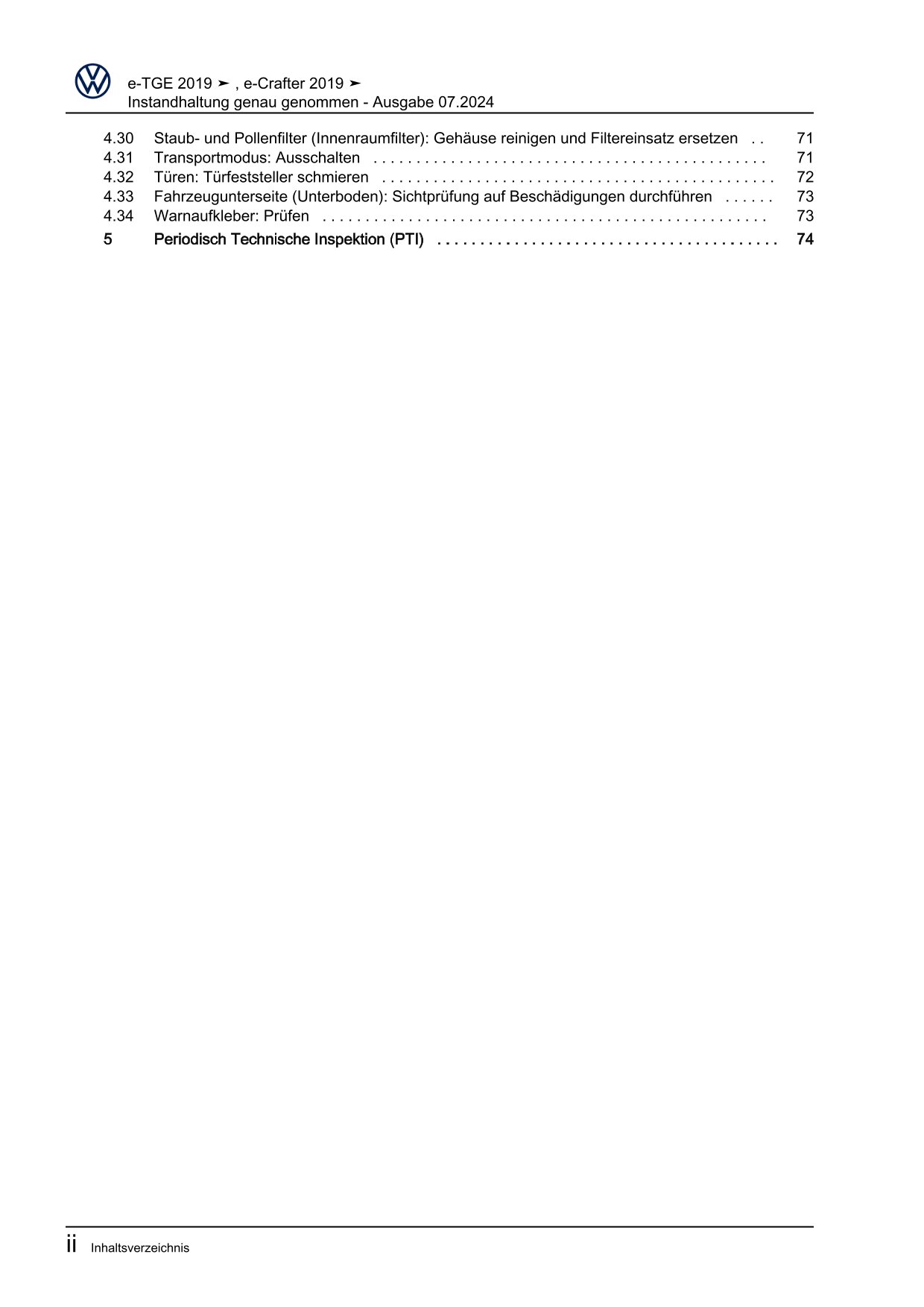 VW e-Crafter SX 2017-2023 Instandhaltung Inspektion Wartung Reparaturanleitung