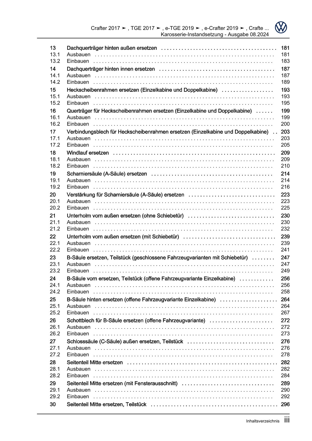 VW e-Crafter SX 2017-2023 Karosserie Unfall Instandsetzung Reparaturanleitung