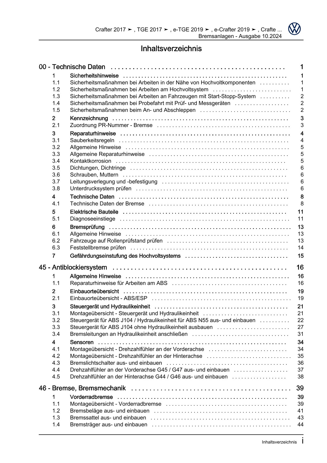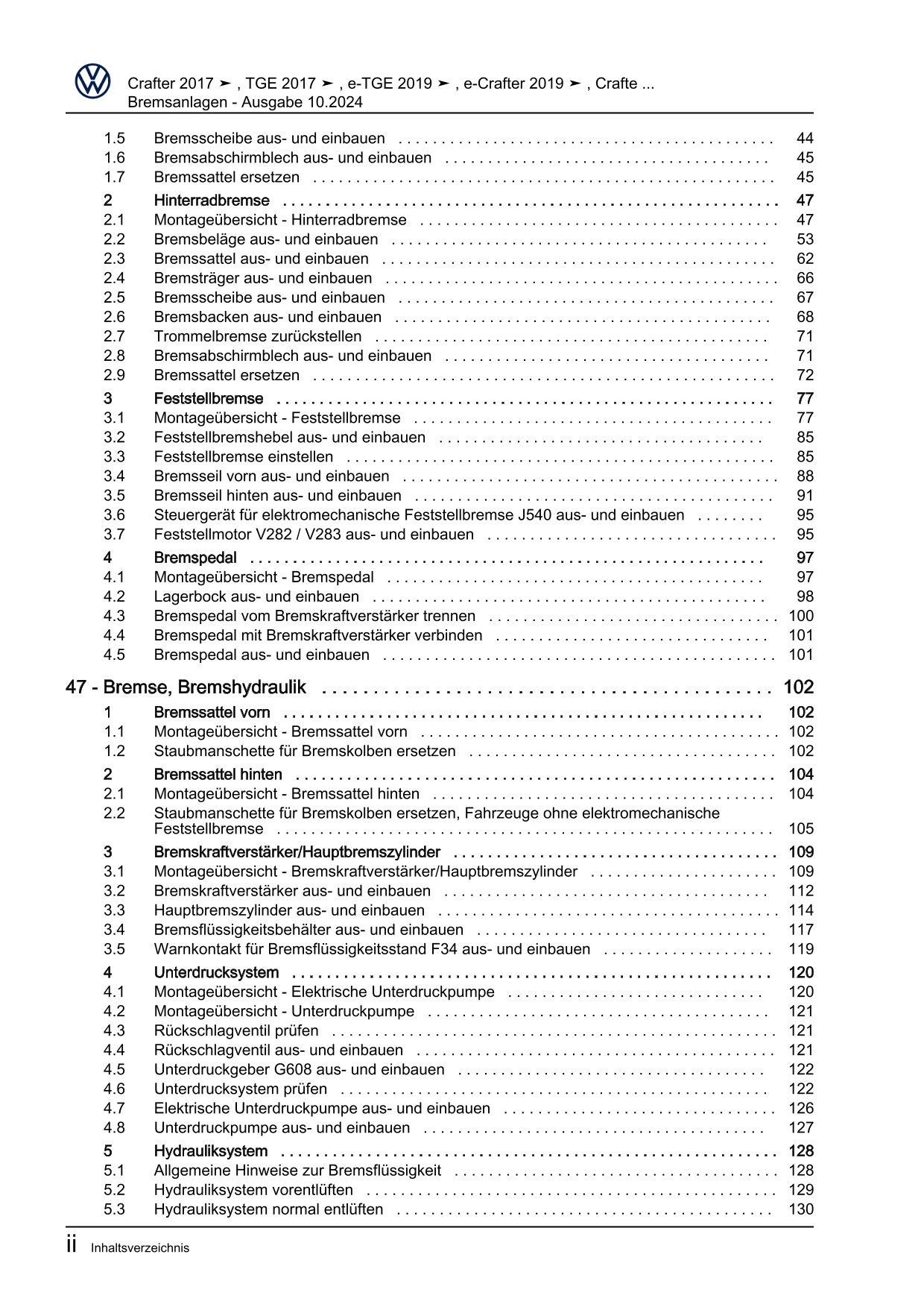 VW e-Crafter Typ SX 2017-2023 Bremsanlage Bremsen System Reparaturanleitung