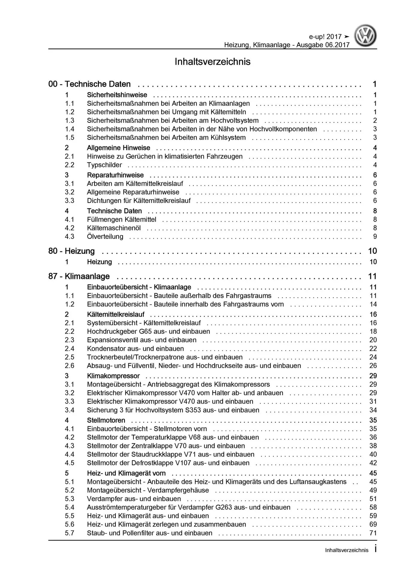 VW e-Up! Typ BL2 ab 2016 Heizung Belüftung Klimaanlage Reparaturanleitung