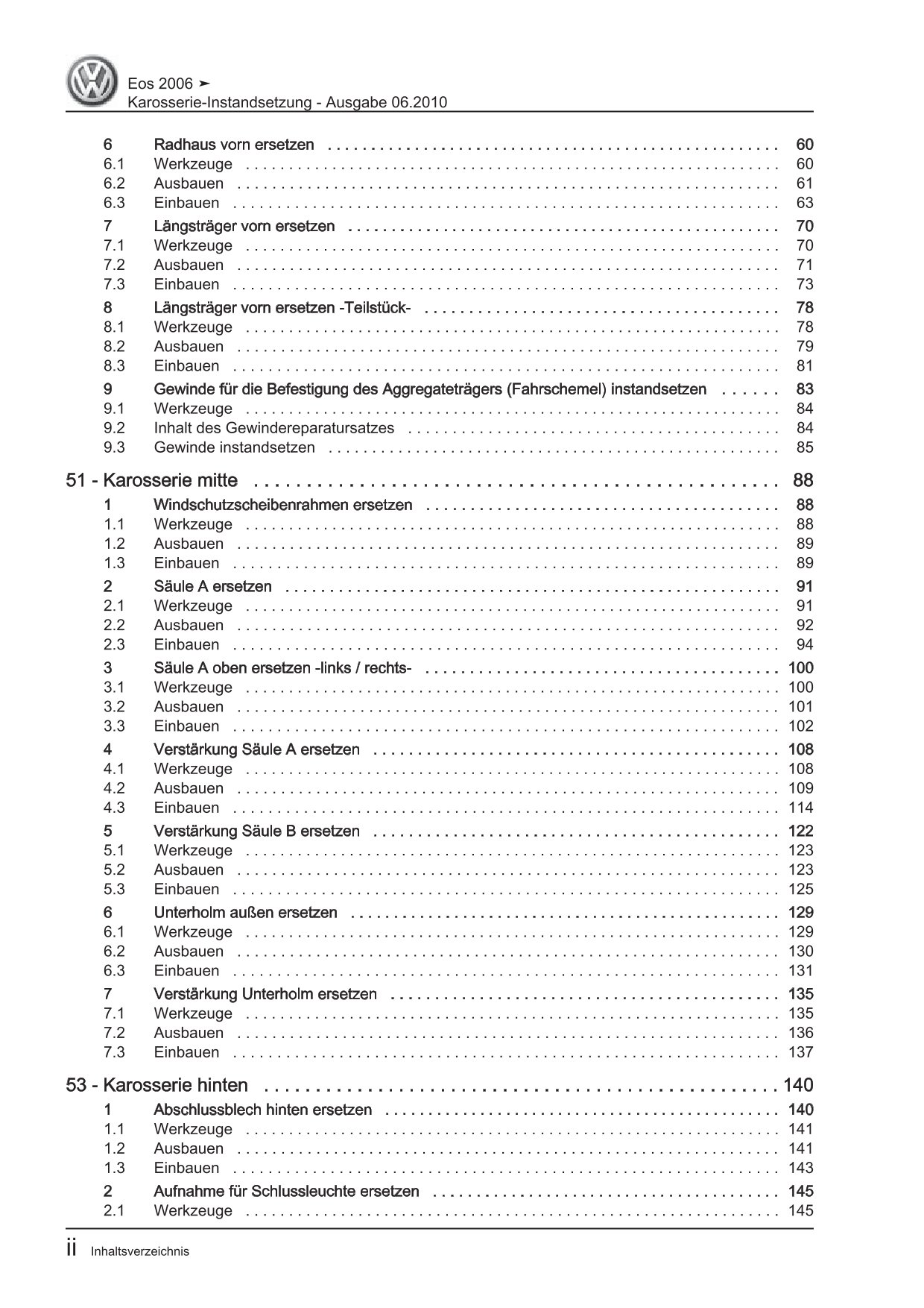 Der Volkswagen EOS Reparaturleitfaden ist ein lizenzierter Nachdruck der originalen Werkstattunterlagen. Diese Anleitung wird von Vertragswerkstätten verwendet und enthält alle technischen Informationen für fachgerechte Reparaturen.