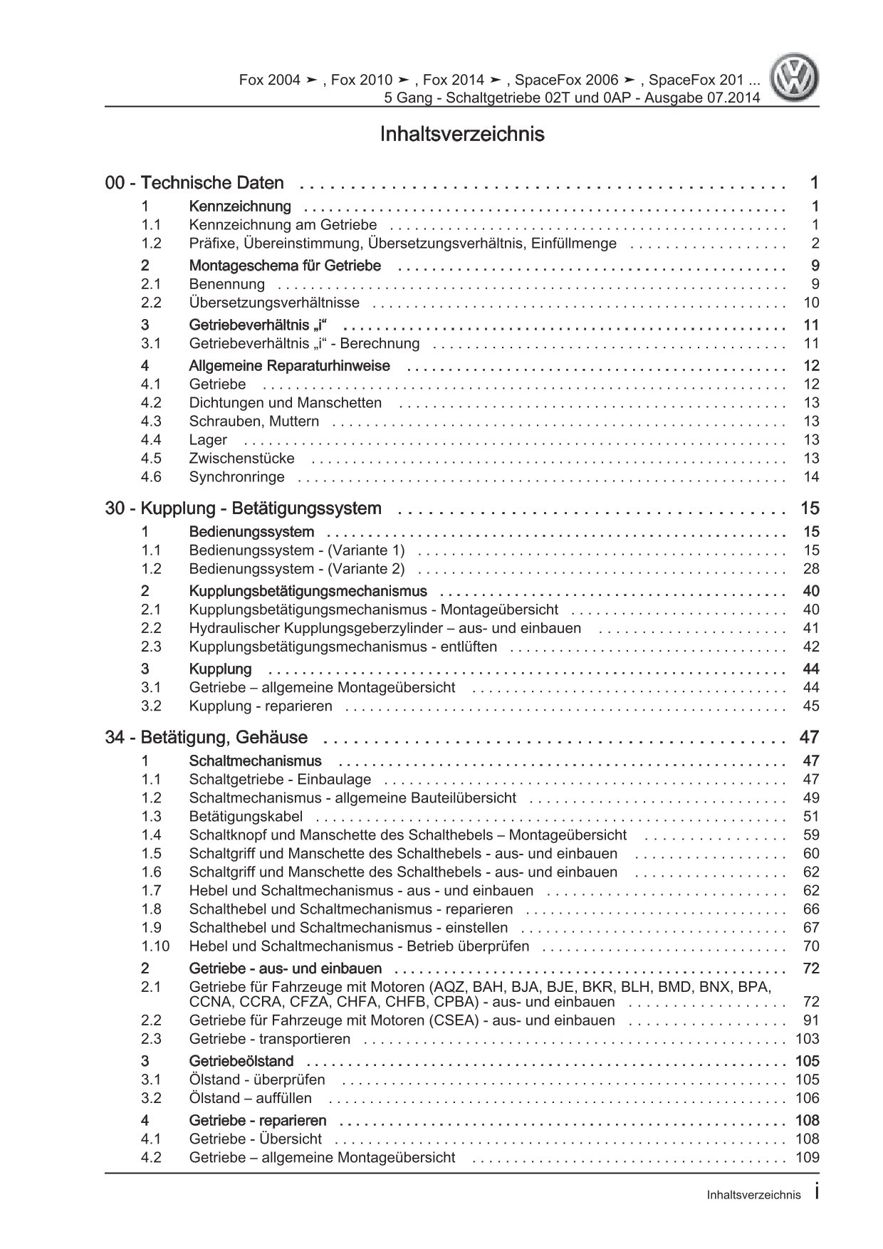 Offizieller Volkswagen Fox Reparaturleitfaden (Typ 5Z, 5Z1, 5Z3, 5Z5, 5Z6, 5Z7)