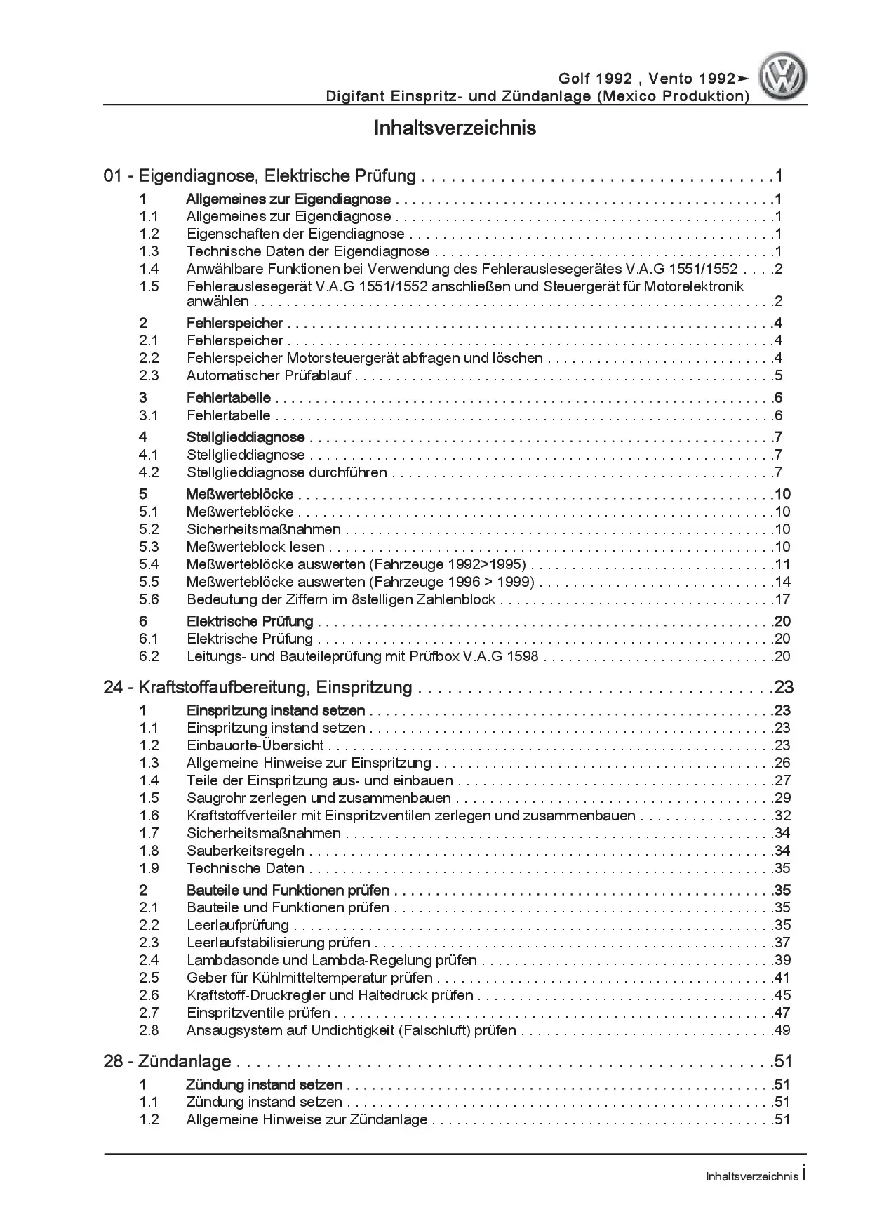 Diese Reparaturanleitung enthält detaillierte Beschreibungen zu Aus- und Einbauarbeiten, Einstell- und Prüfarbeiten sowie zahlreiche Grafiken, Bilder und Explosionszeichnungen. Die Kunststoffringbindung ermöglicht ein problemloses Umschlagen bis zu 180°.