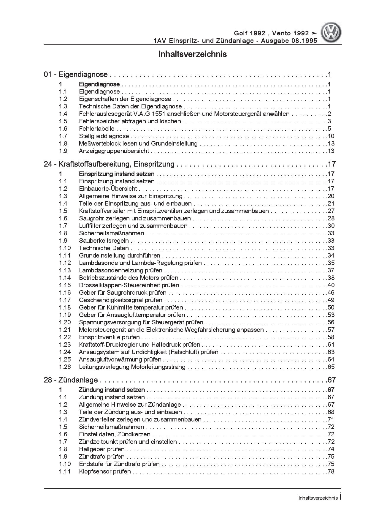 Diese Reparaturanleitung enthält detaillierte Beschreibungen zu Aus- und Einbauarbeiten, Einstell- und Prüfarbeiten sowie zahlreiche Grafiken, Bilder und Explosionszeichnungen. Die Kunststoffringbindung ermöglicht ein problemloses Umschlagen bis zu 180°.